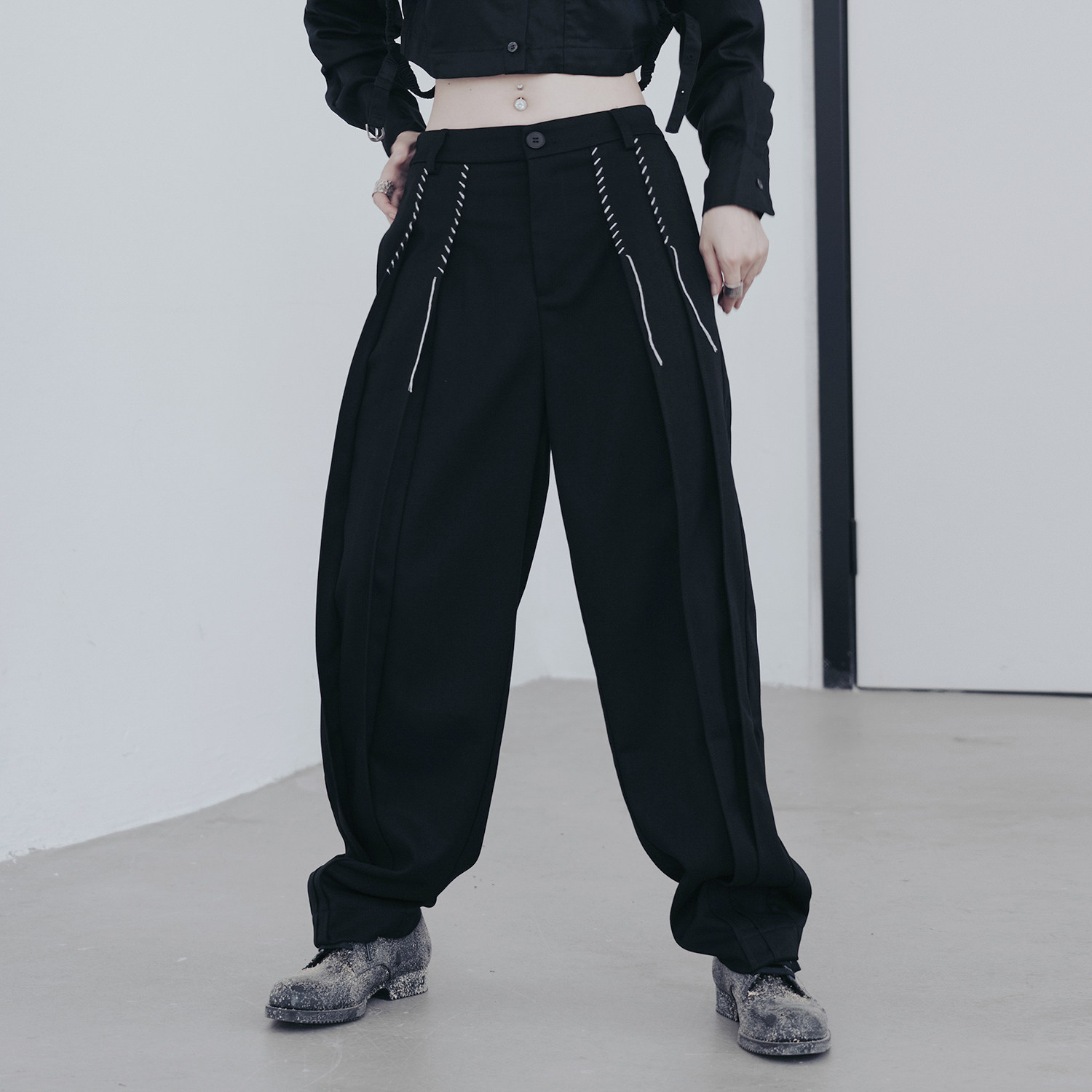 Простые черные 2022 Осень и Зимние темно -черное ветры Белое украшение
