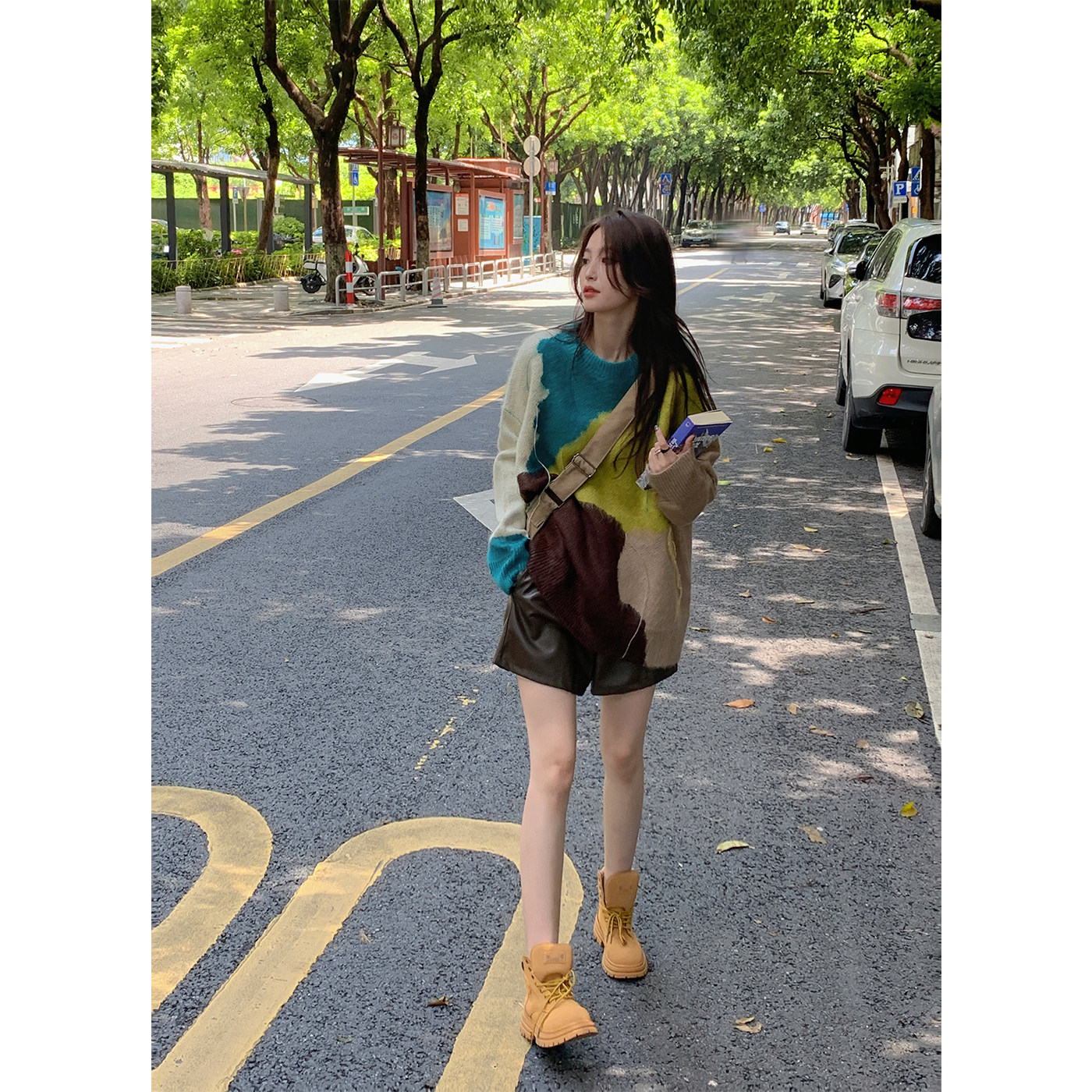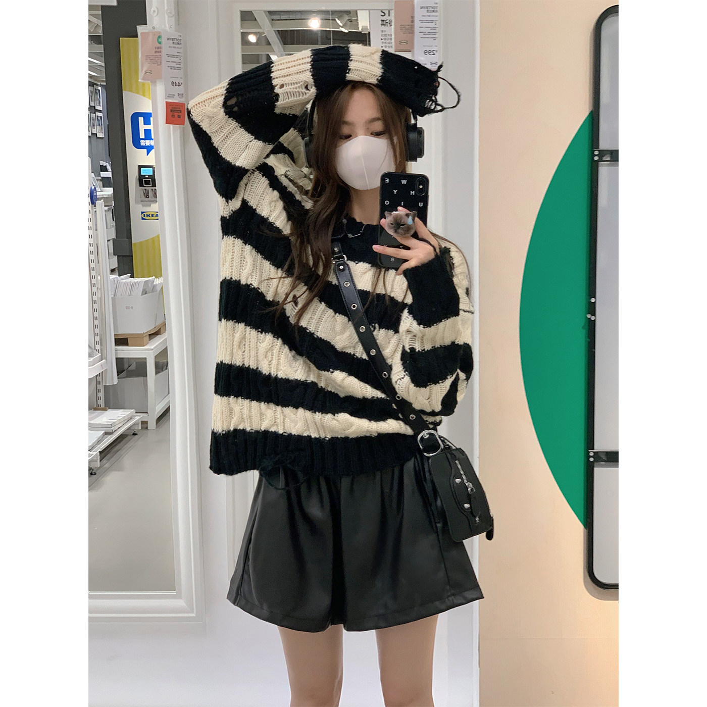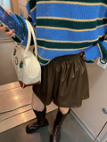 Черные короткие осенние штаны, шорты, высокая талия, А-силуэт, в корейском стиле