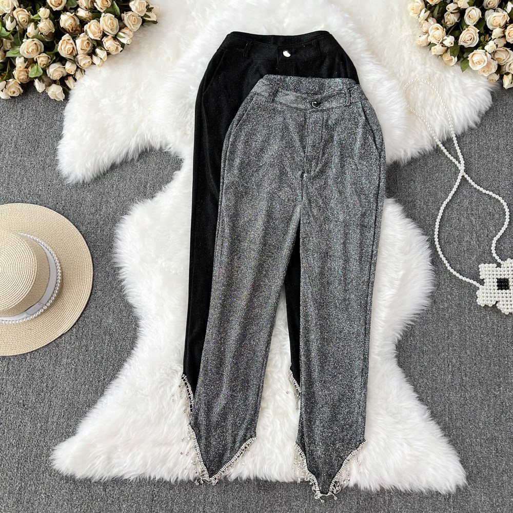 Осенние ретро приталенные блестящие штаны, европейский стиль, высокая талия
