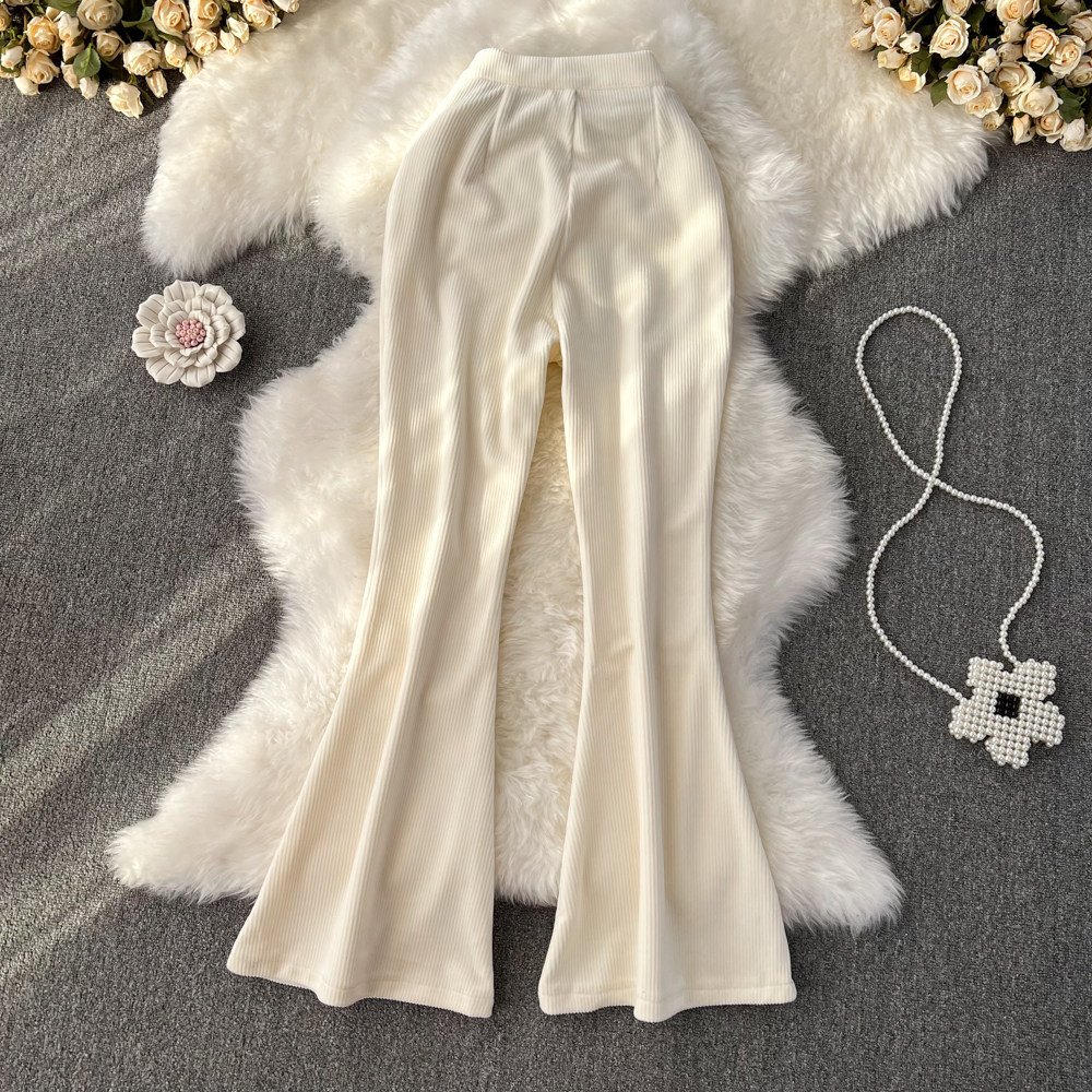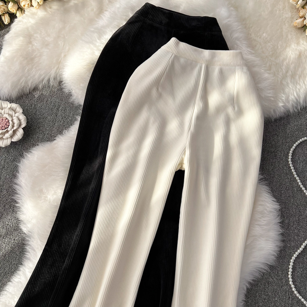 Демисезонные штаны, приталенные вельветовые штаны-клёш, повседневные брюки, 2023 года, в корейском стиле, высокая талия