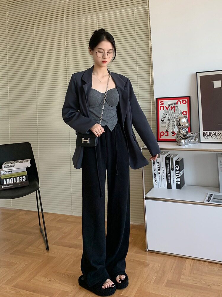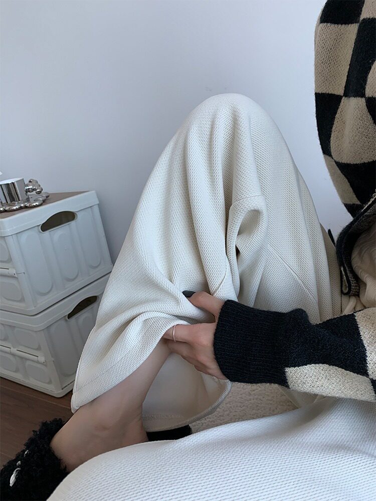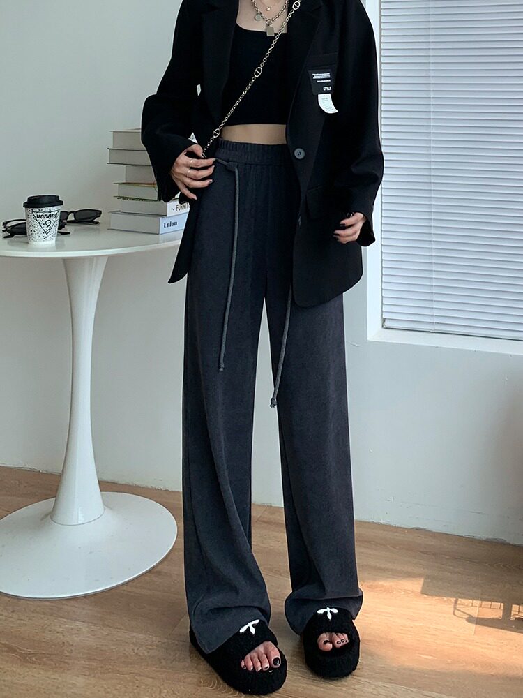 Трикотажные осенние штаны для отдыха, свободный прямой крой, высокая талия