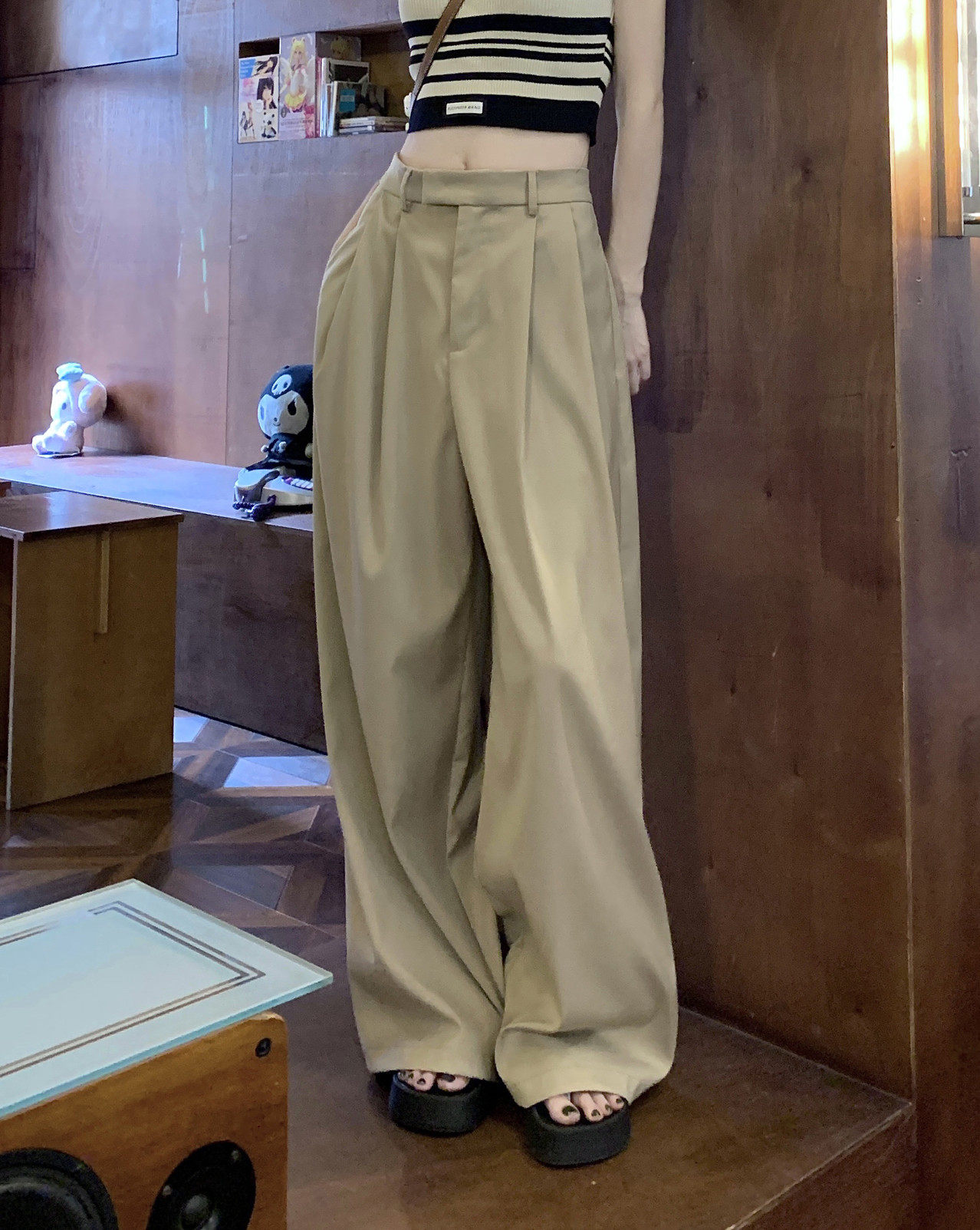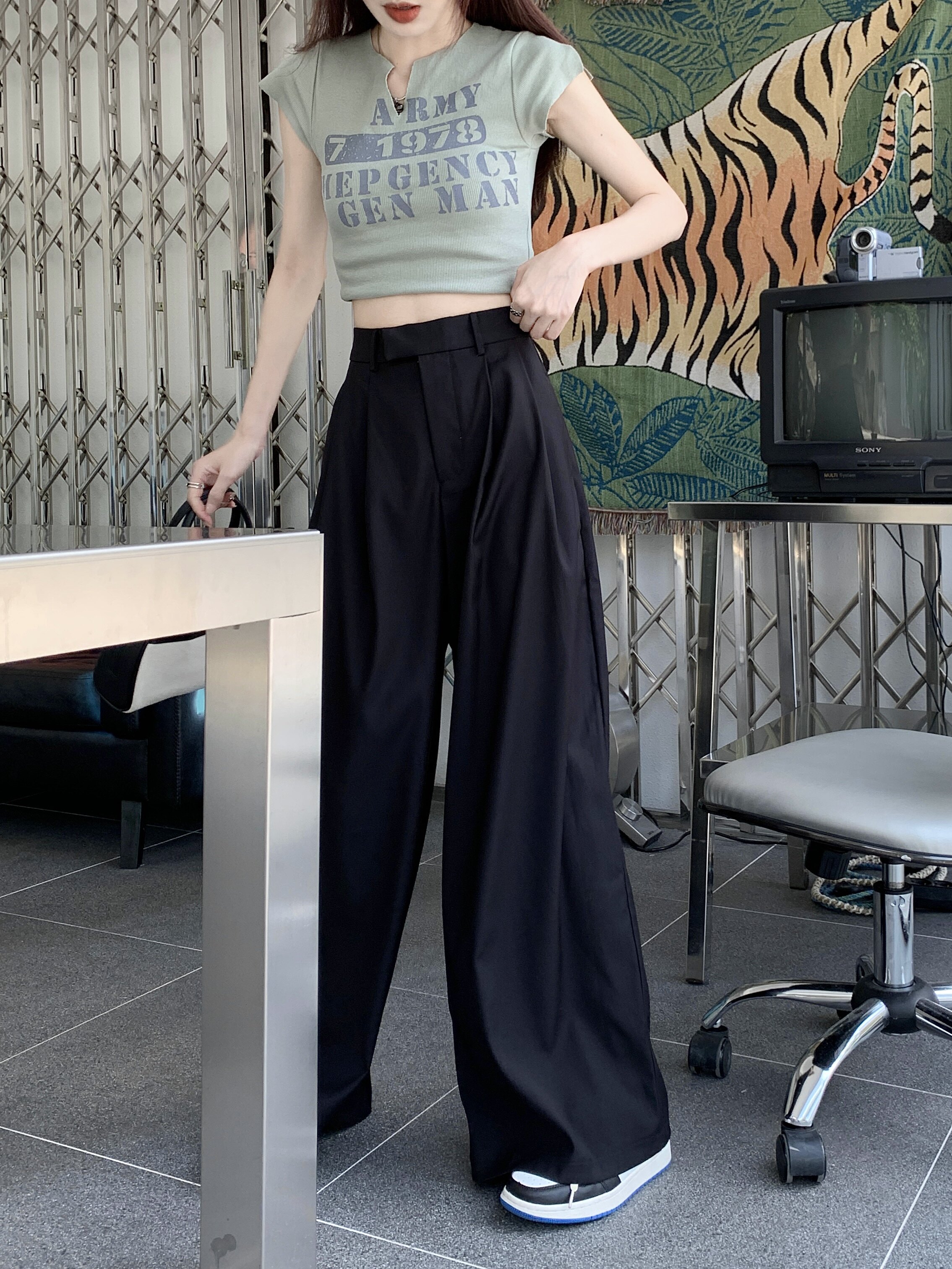 Костюм, весенние штаны для отдыха, большой размер, высокая талия, французский стиль, свободный прямой крой