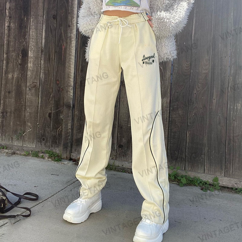 Желтые демисезонные штаны для отдыха, в американском стиле, оверсайз, свободный прямой крой