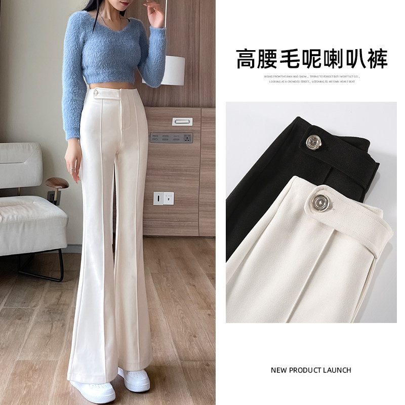Шерстяные штаны-клёш, осенние демисезонные приталенные штаны, костюм для отдыха, свободный прямой крой