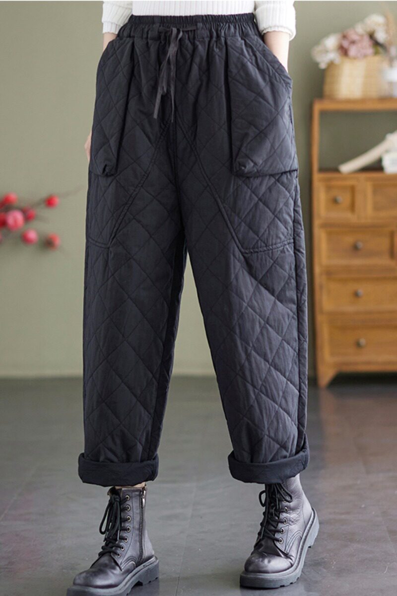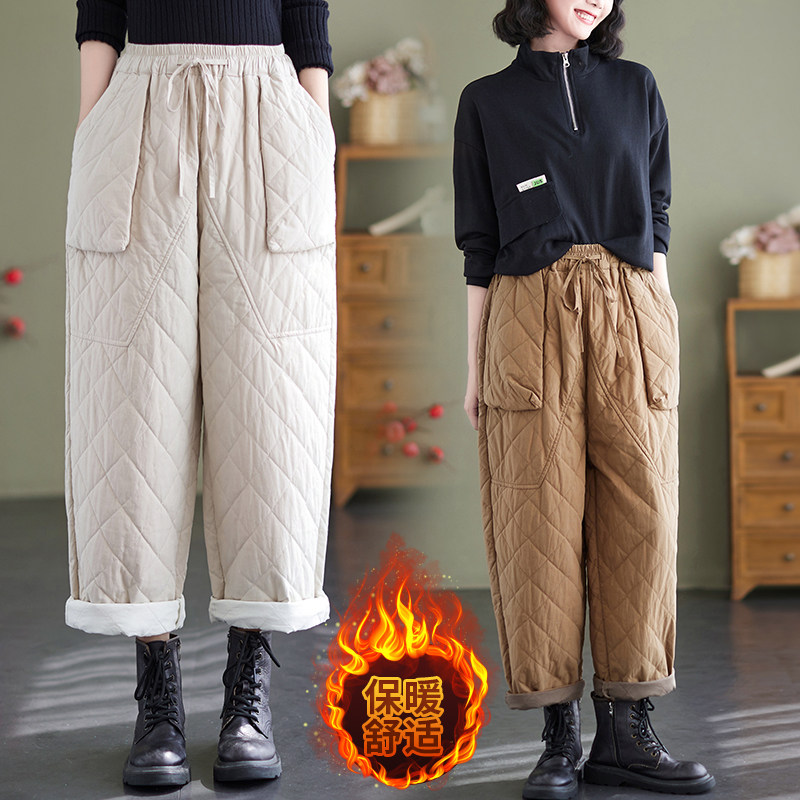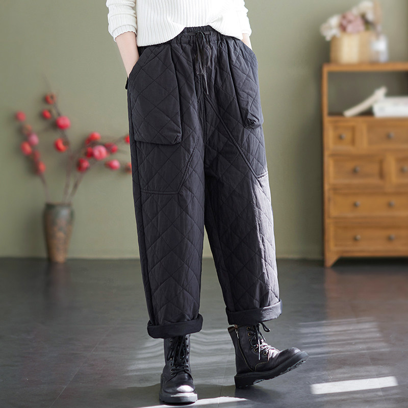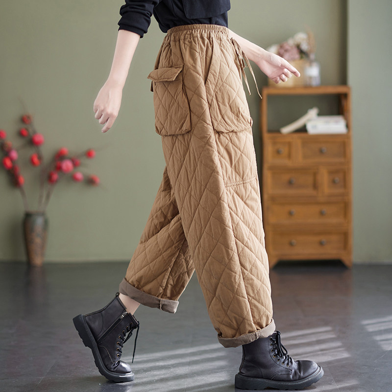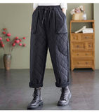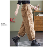 Зимние стеганые утепленные штаны, эластичная талия, большой размер, свободный прямой крой