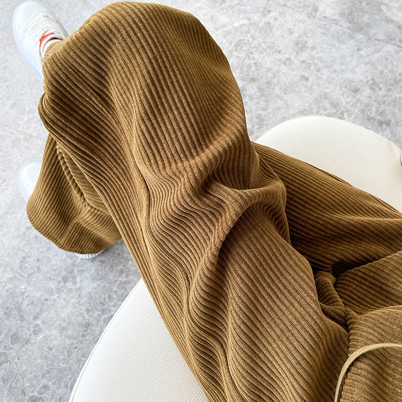 Кофейные вельветовые демисезонные бархатные штаны, свободный прямой крой