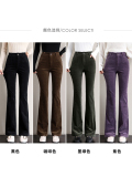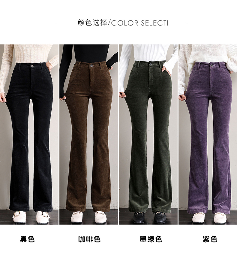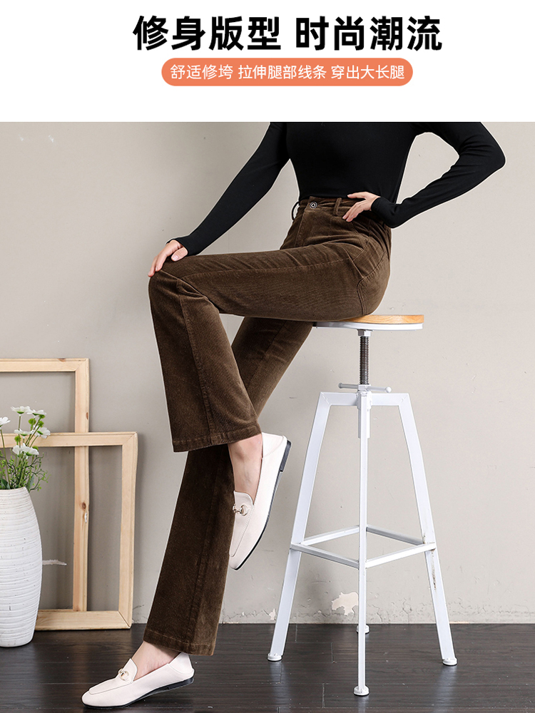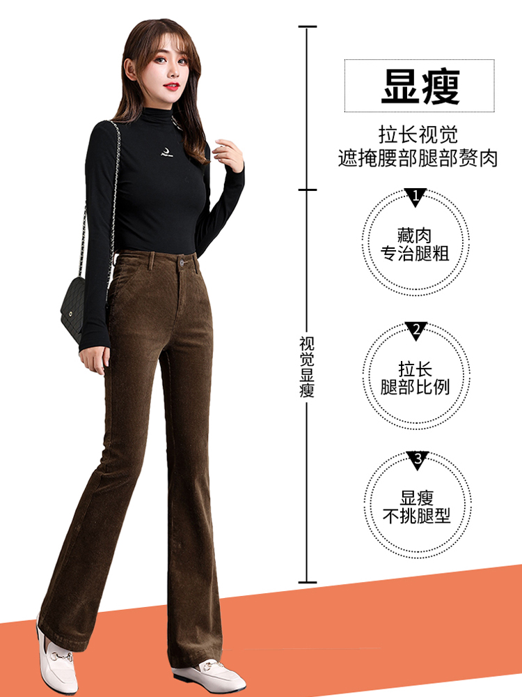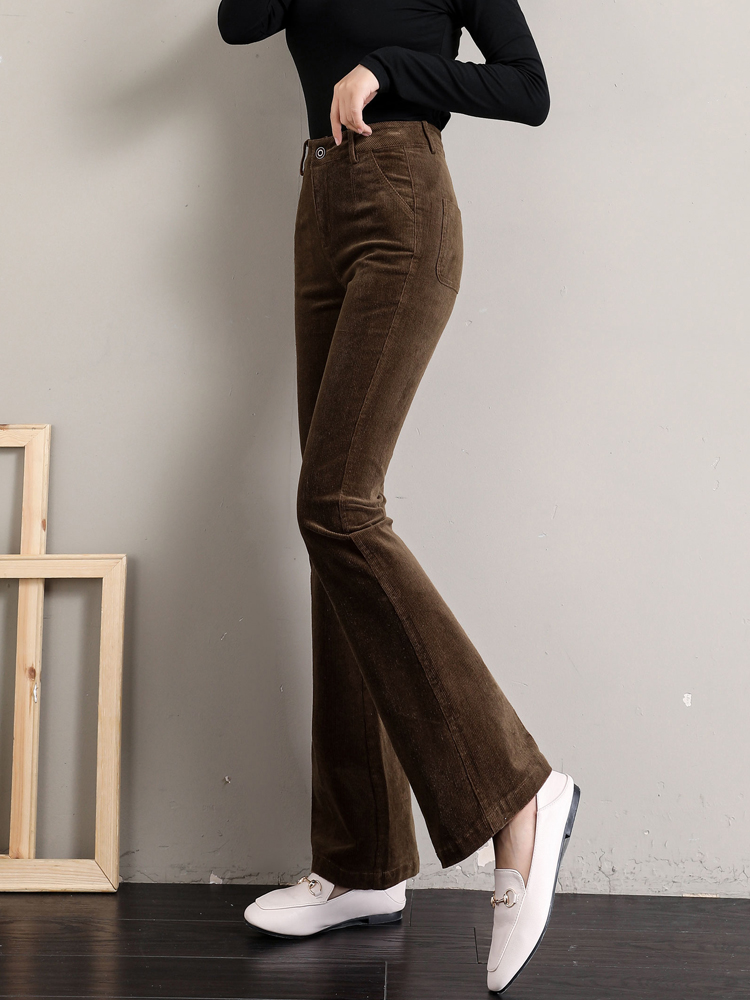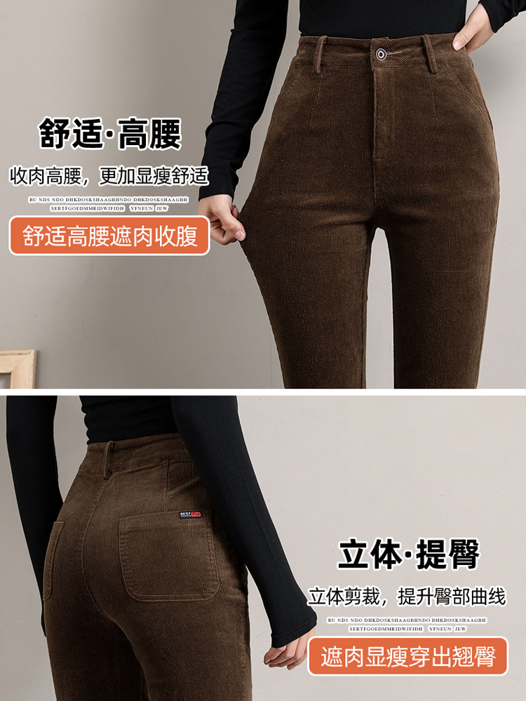 Вельветовые демисезонные штаны-клёш, леггинсы, утепленные приталенные эластичные штаны для отдыха, высокая талия, в обтяжку