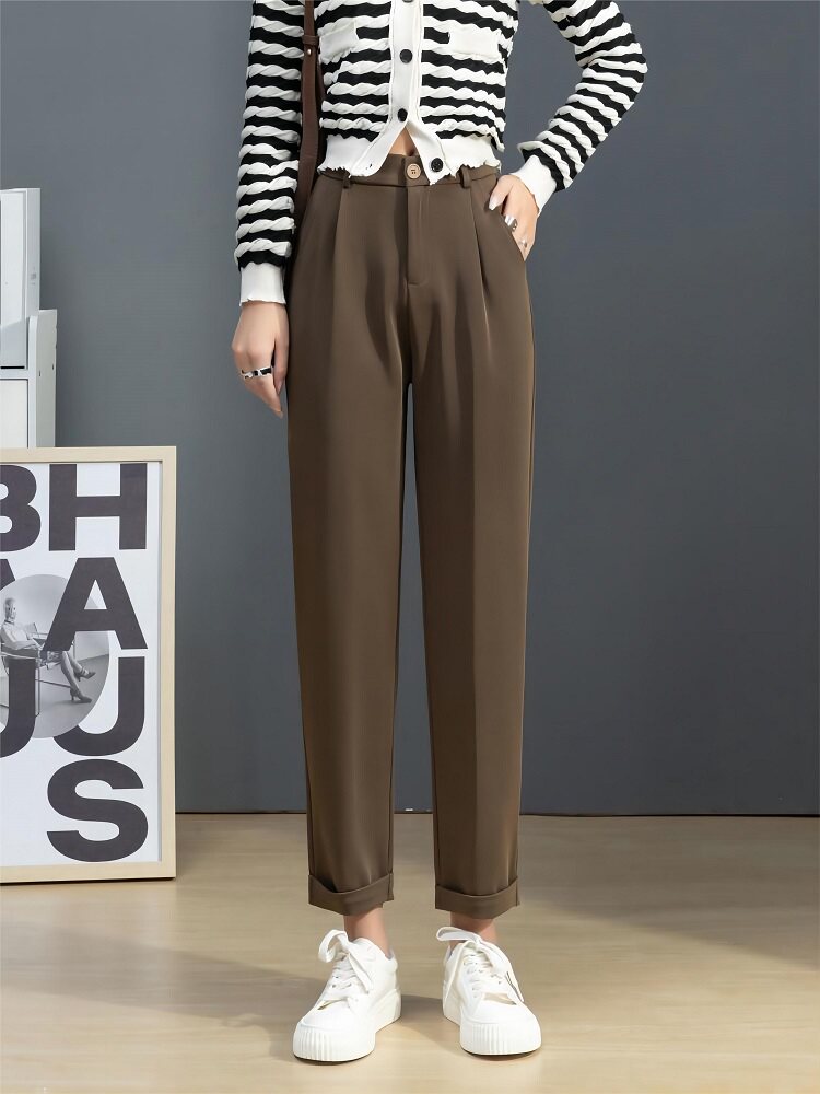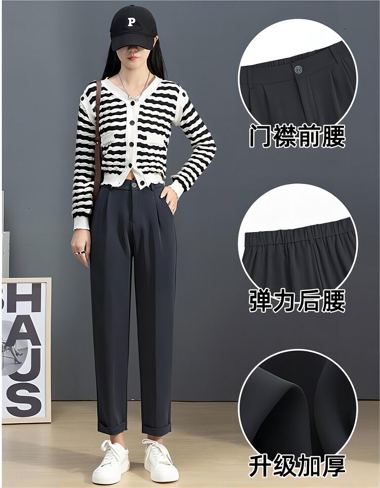 Осенние штаны для отдыха, приталенный костюм, увеличенная толщина, высокая талия, по фигуре