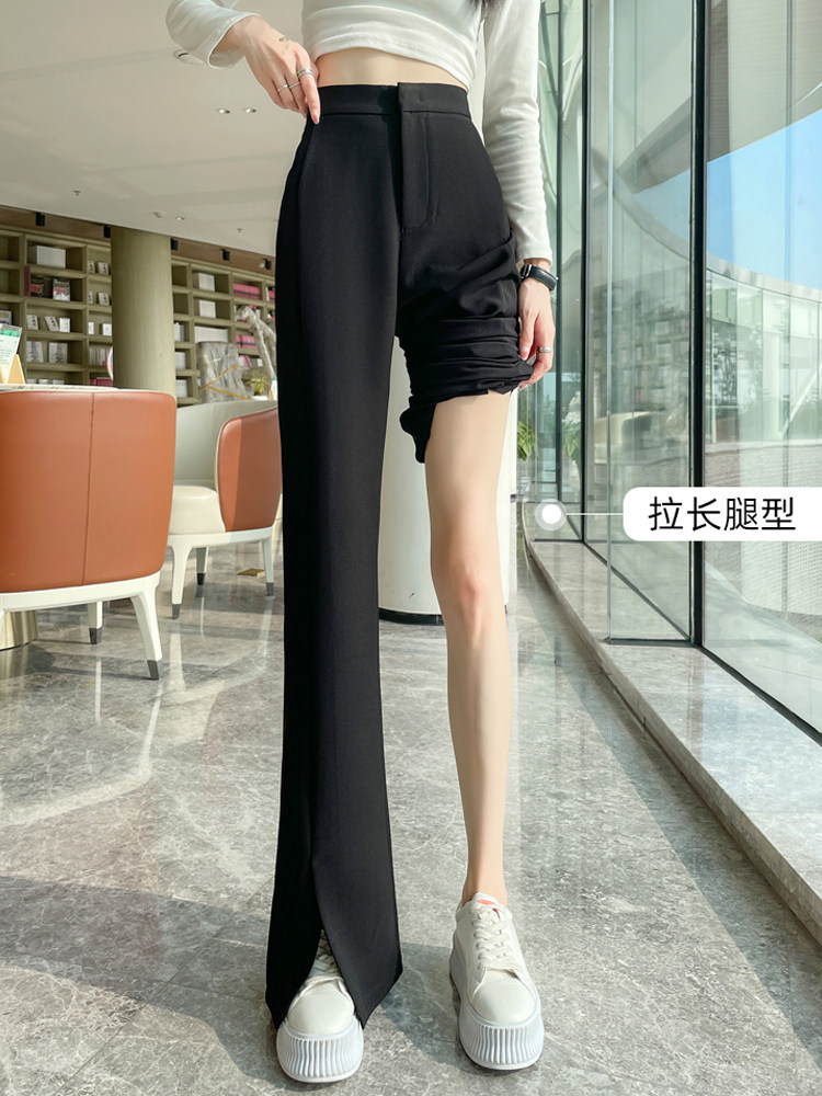 Черный костюм, демисезонные штаны, штаны-клёш, коллекция 2023, подходит для подростков, свободный прямой крой