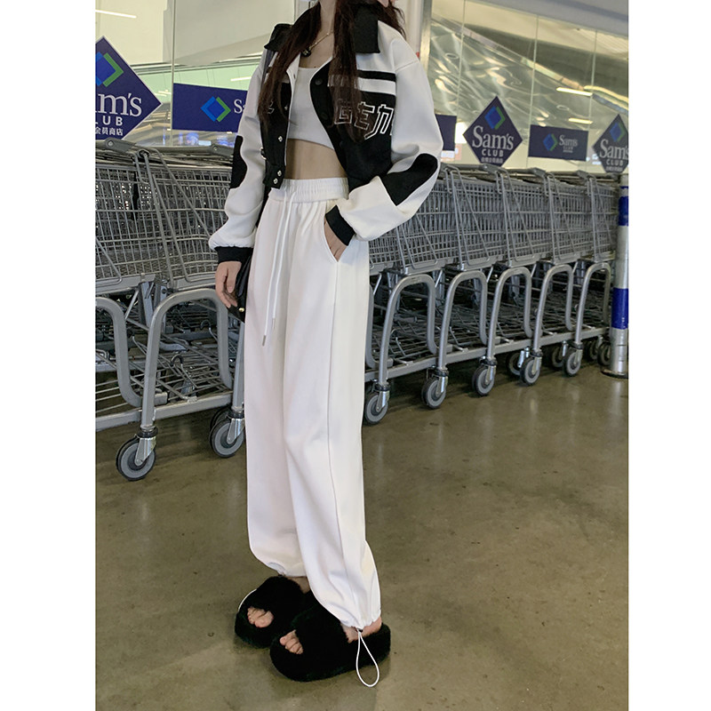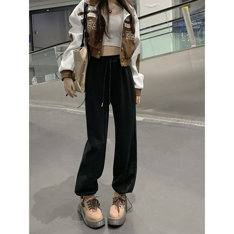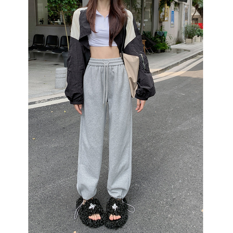 Весенние штаны, в американском стиле, высокая талия, коллекция 2023, свободный крой, на шнурках, в корейском стиле