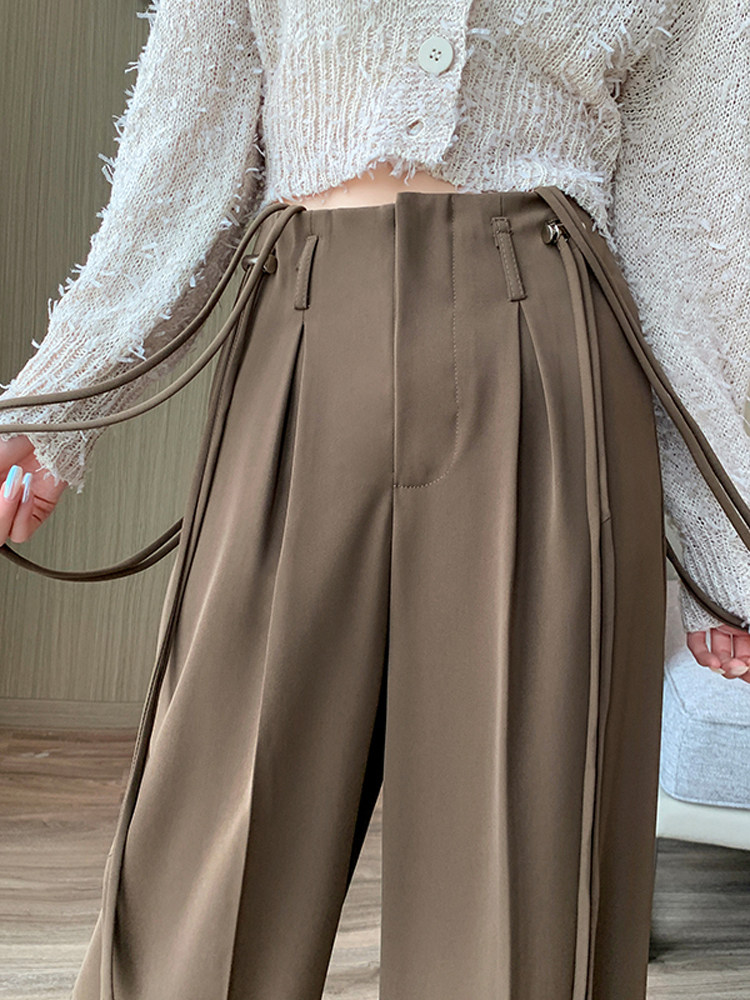 Небольшие дизайнерские элитные штаны, высокая талия, свободный прямой крой