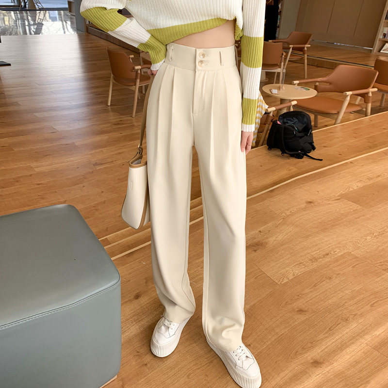 Бежевый пиджак классического кроя, осенние небольшие штаны, подходит для подростков, высокая талия, свободный прямой крой