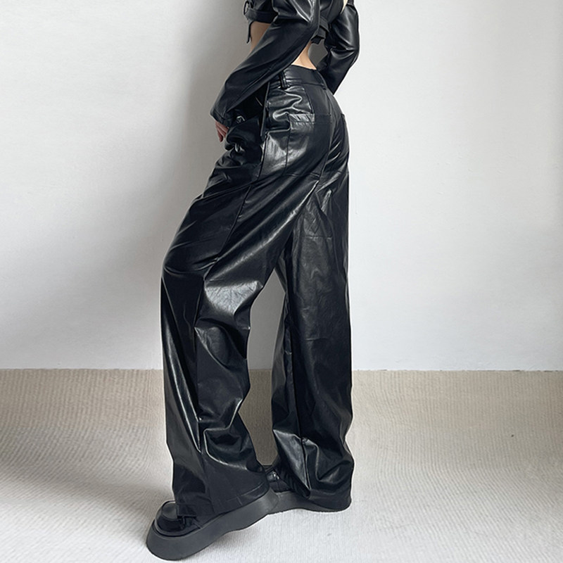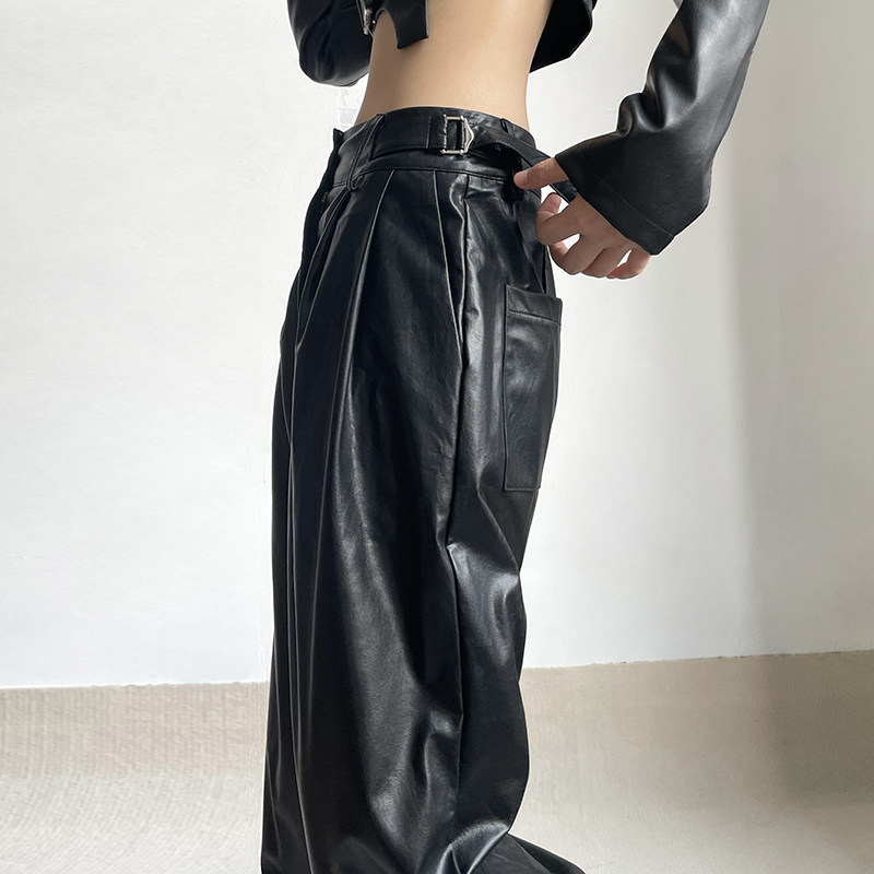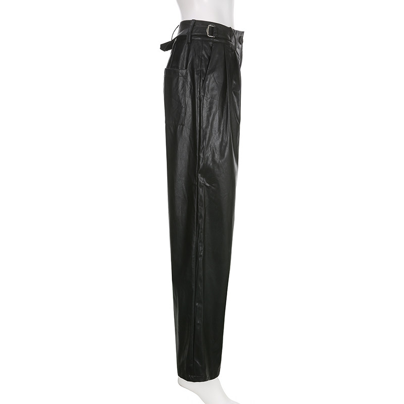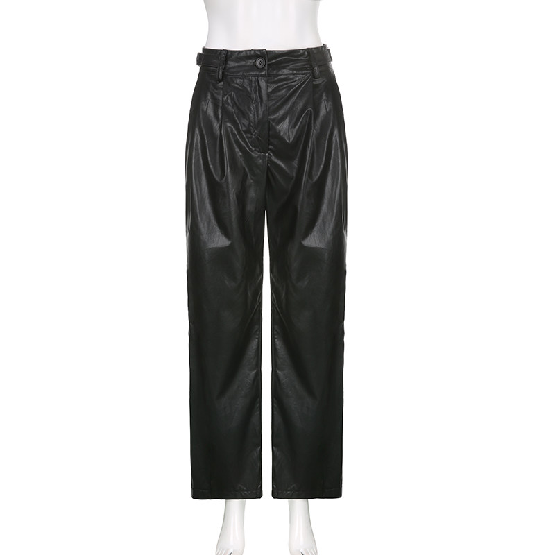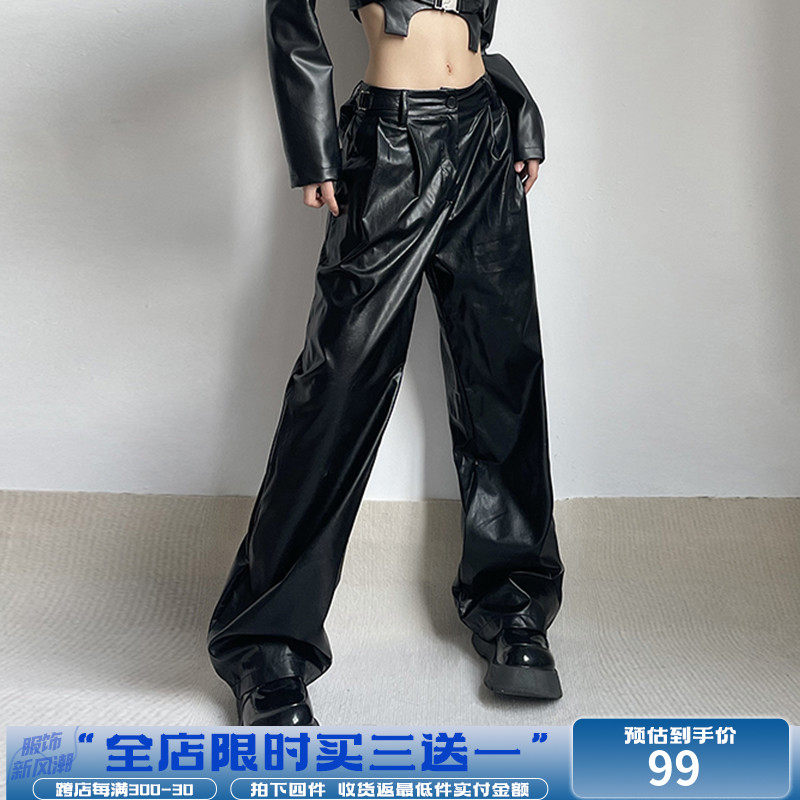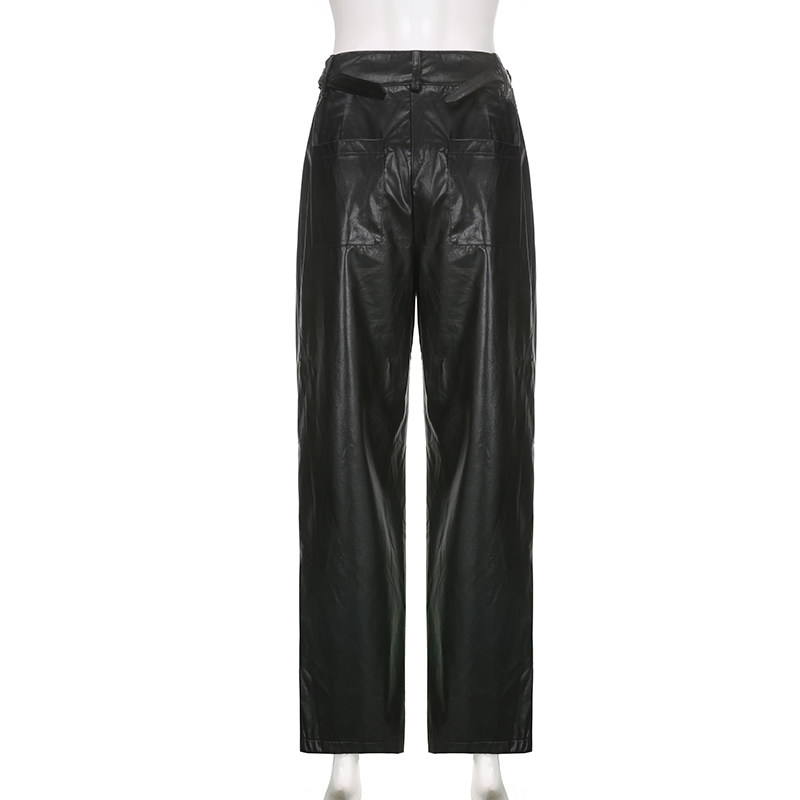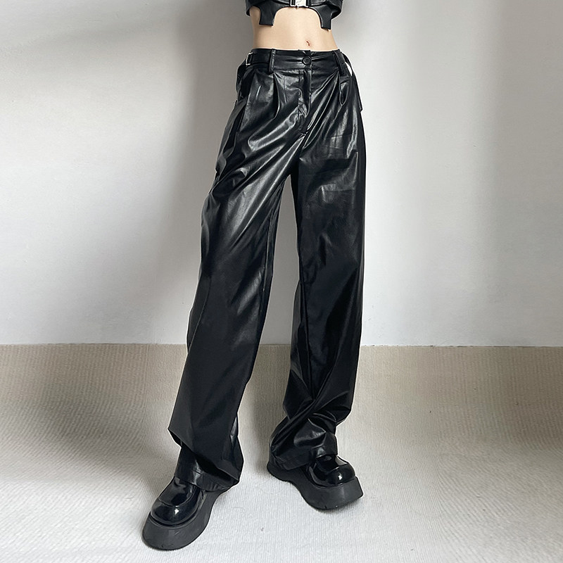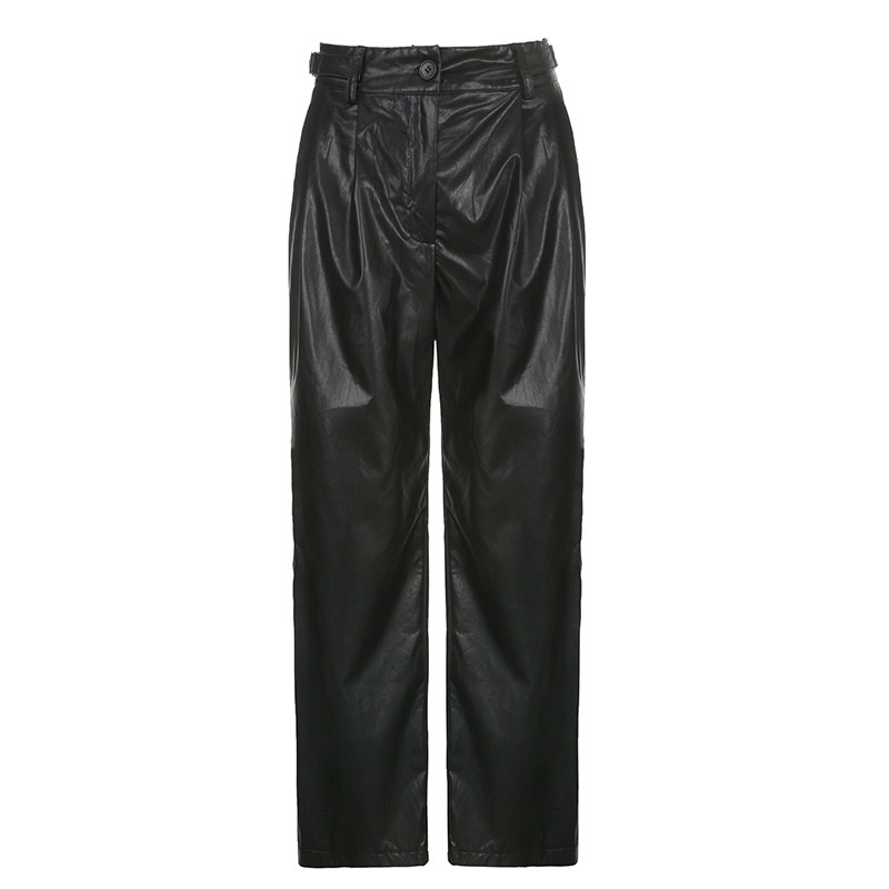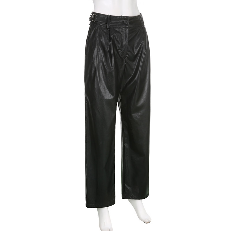 WEEKEEP Черная металлическая пряжка, штаны, европейский стиль, свободный прямой крой