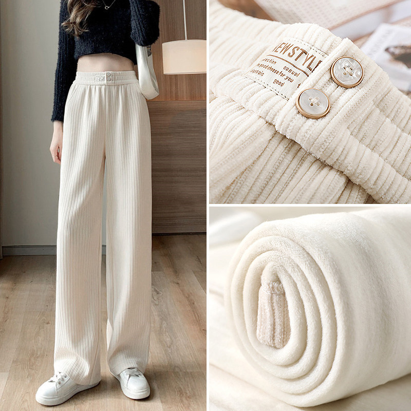 Белые штаны, вельветовый потолочный светильник, высокая талия, свободный прямой крой, подходят для подростков