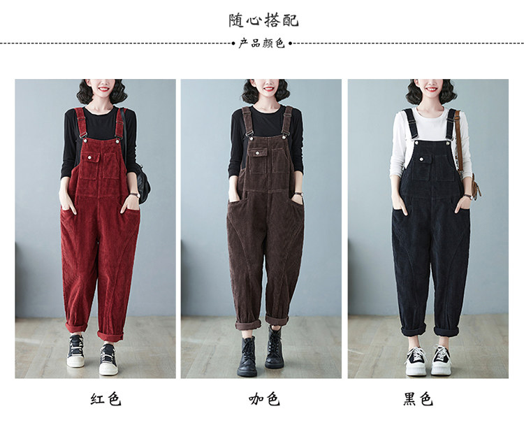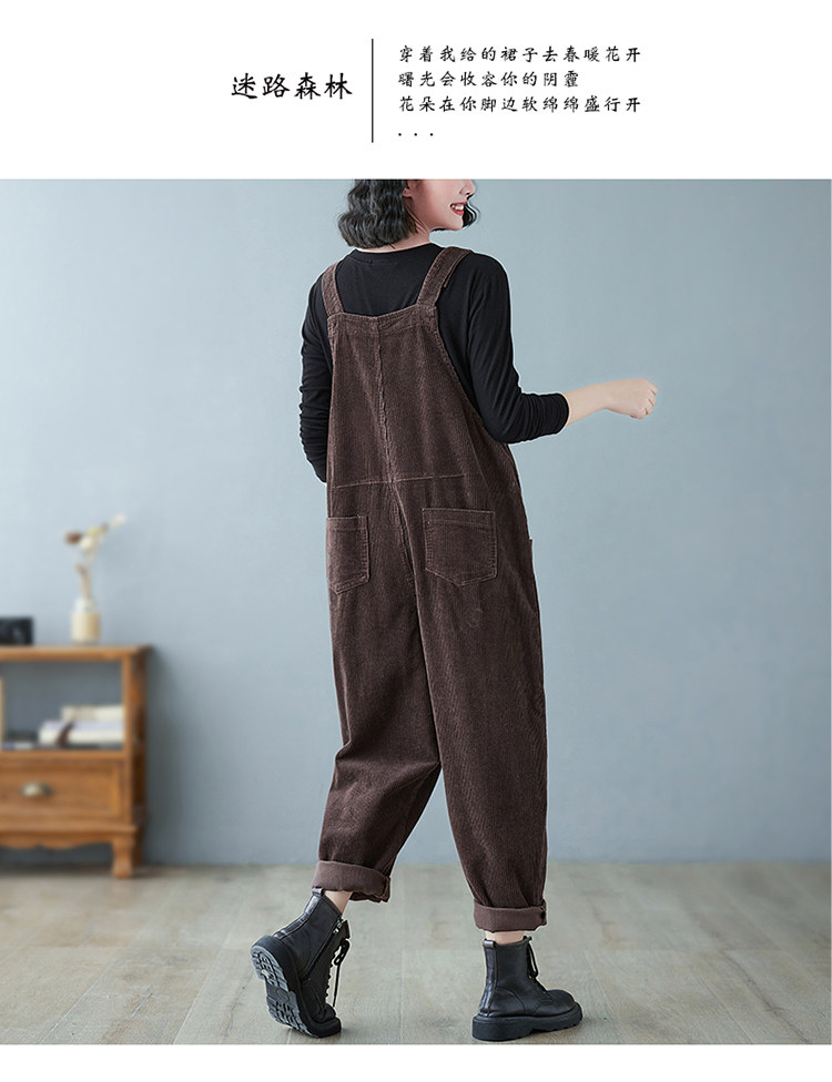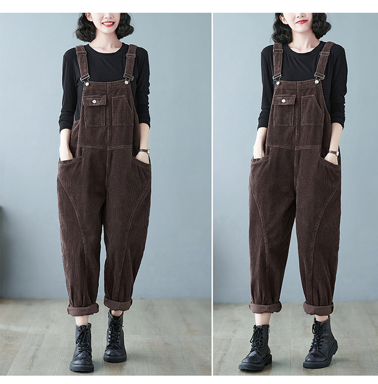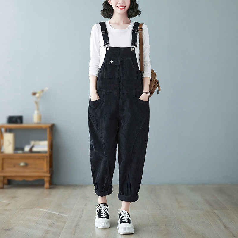 Ретро вельветовый демисезонный комбинезон, леггинсы, штаны, в корейском стиле, оверсайз