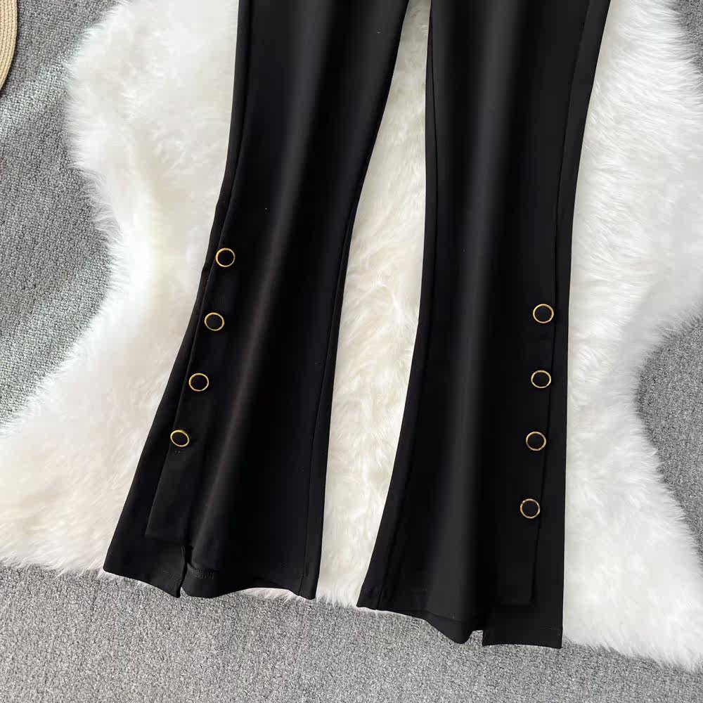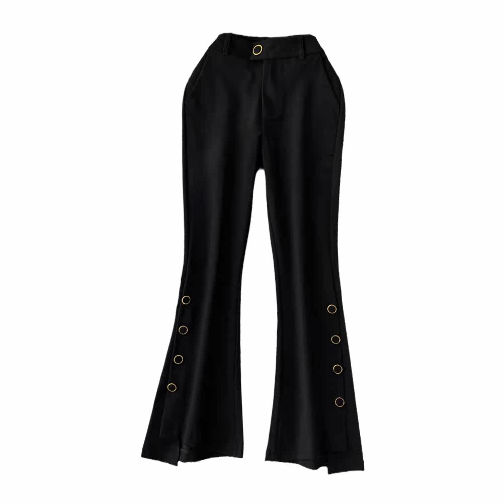 Штаны-клёш, демисезонные штаны, ретро мегафон, в корейском стиле, высокая талия, в обтяжку, по фигуре