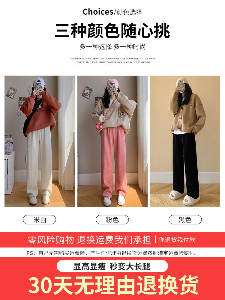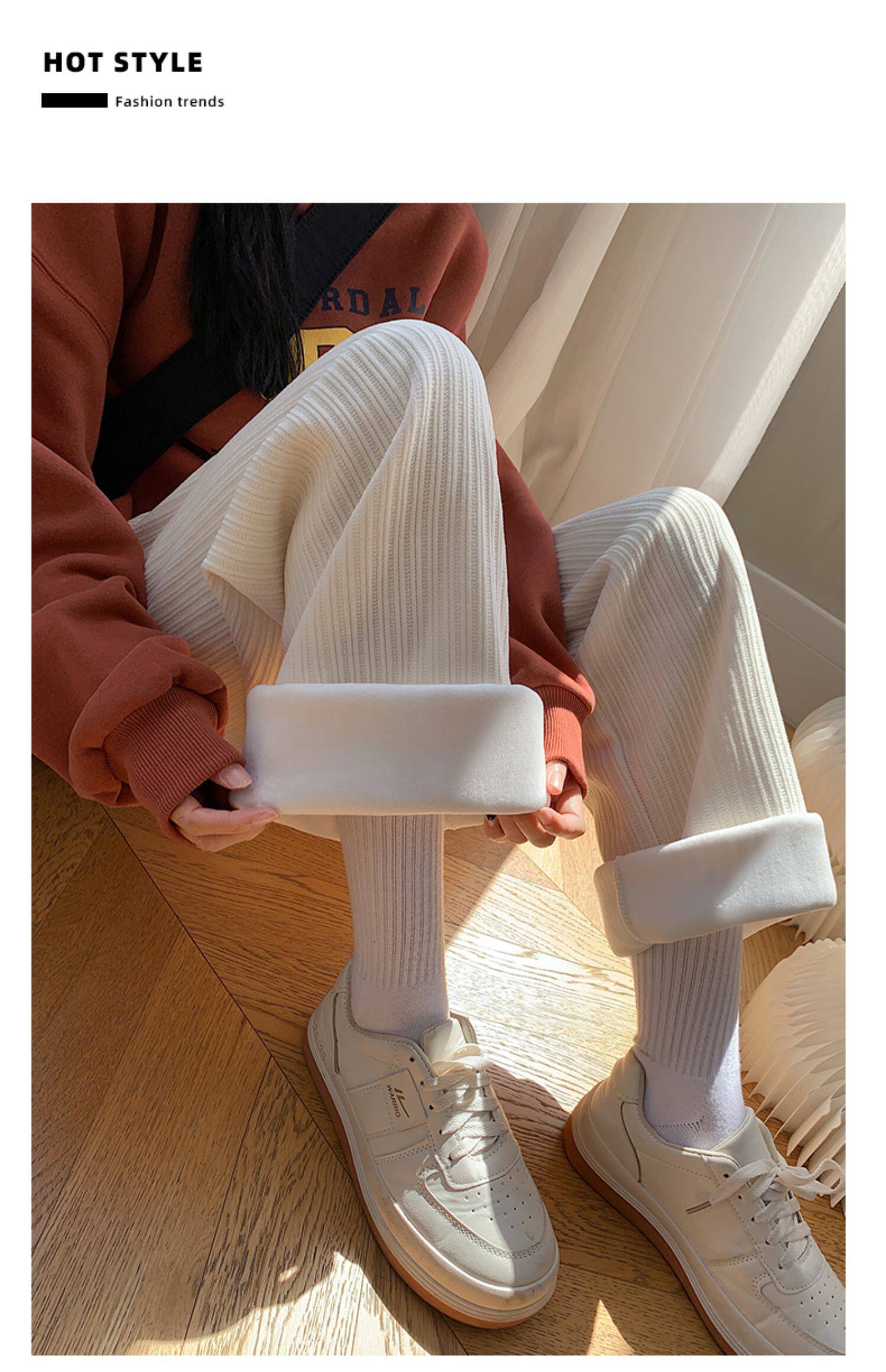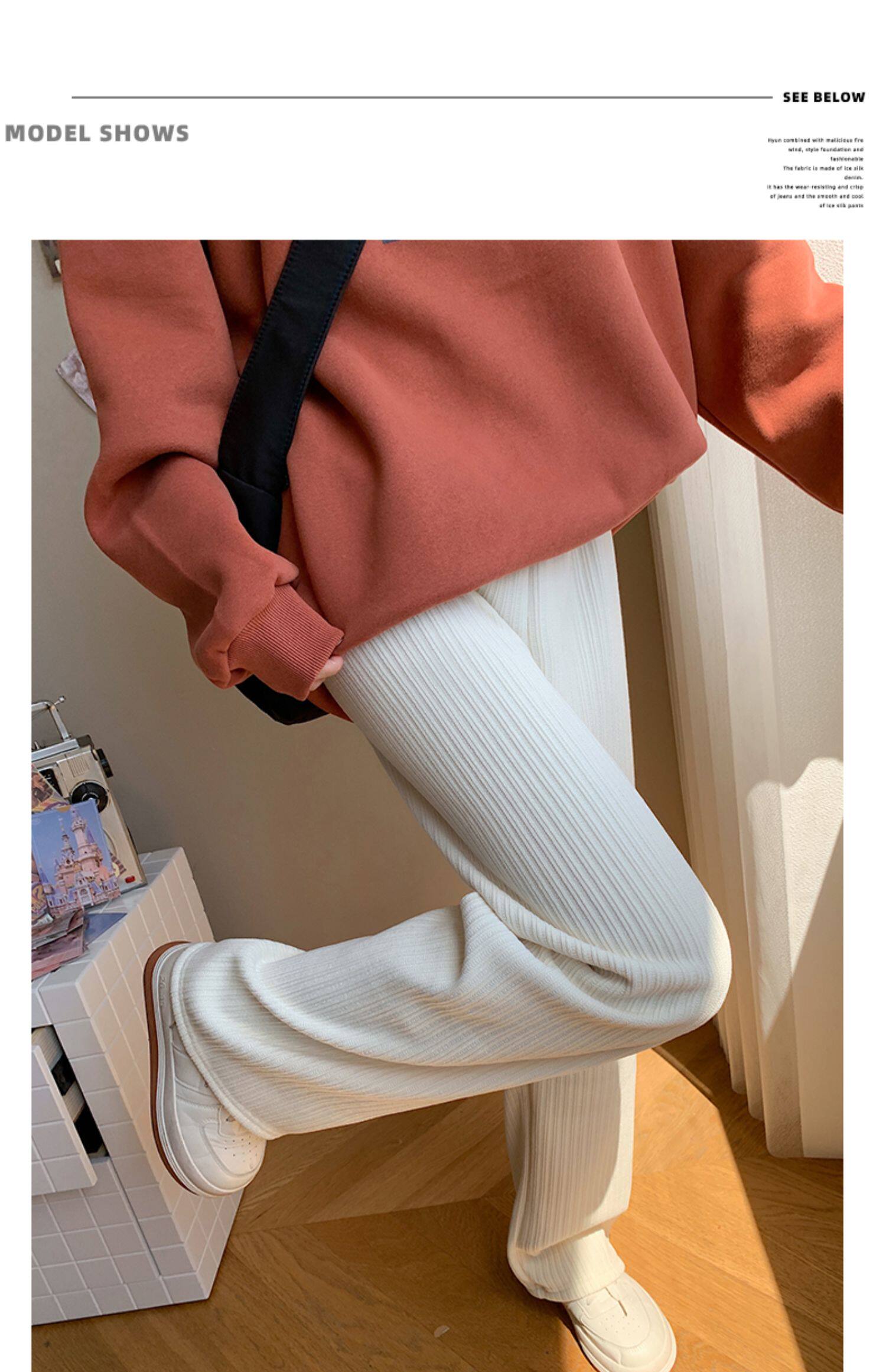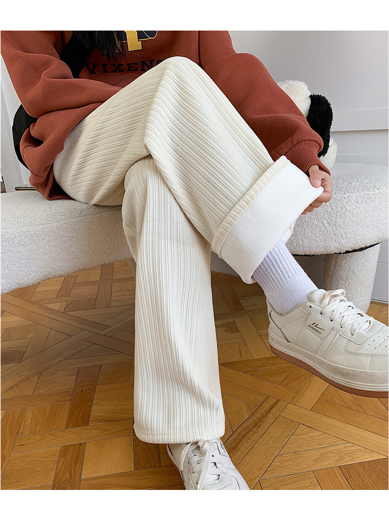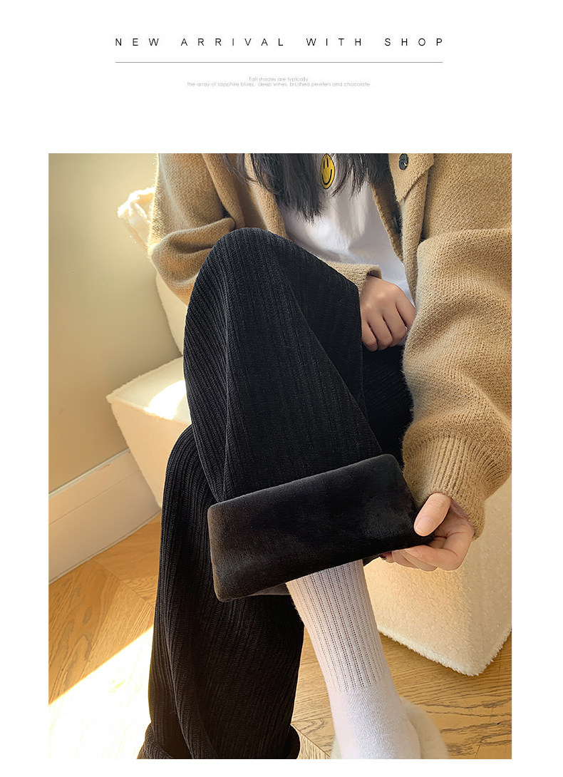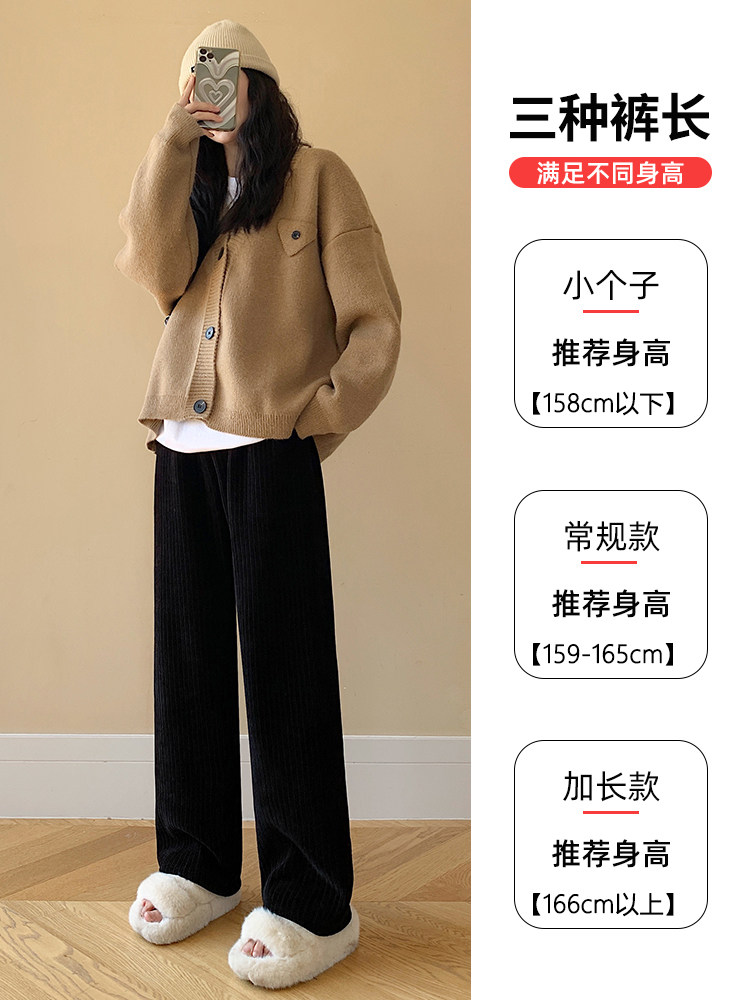 Шерстяные демисезонные черные штаны для отдыха, высокая талия, увеличенная толщина, свободный прямой крой
