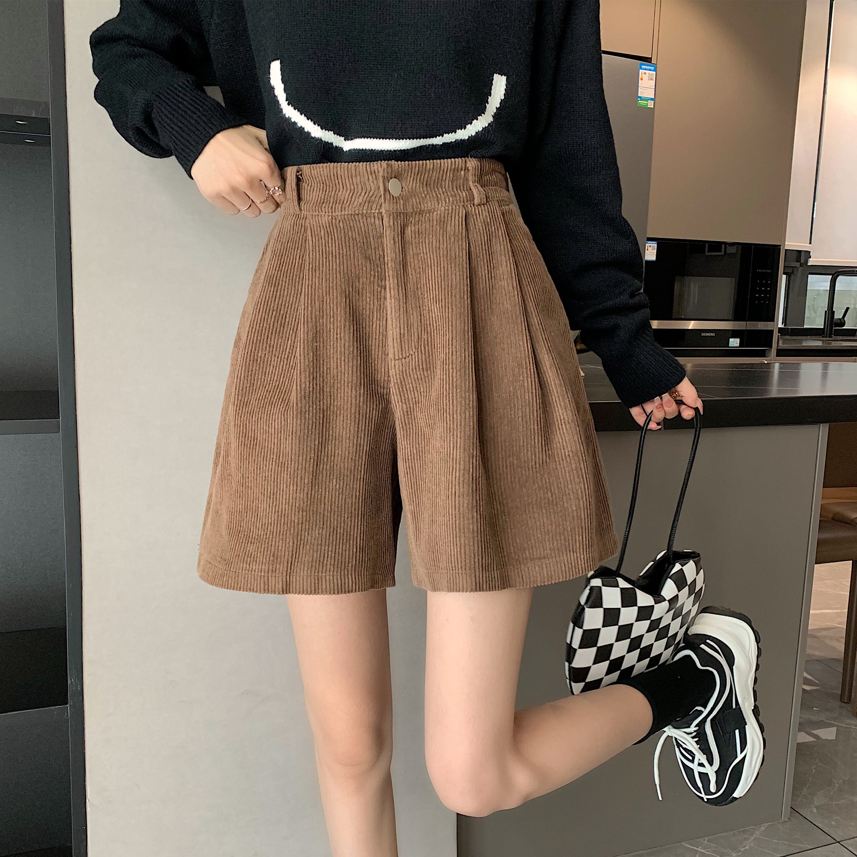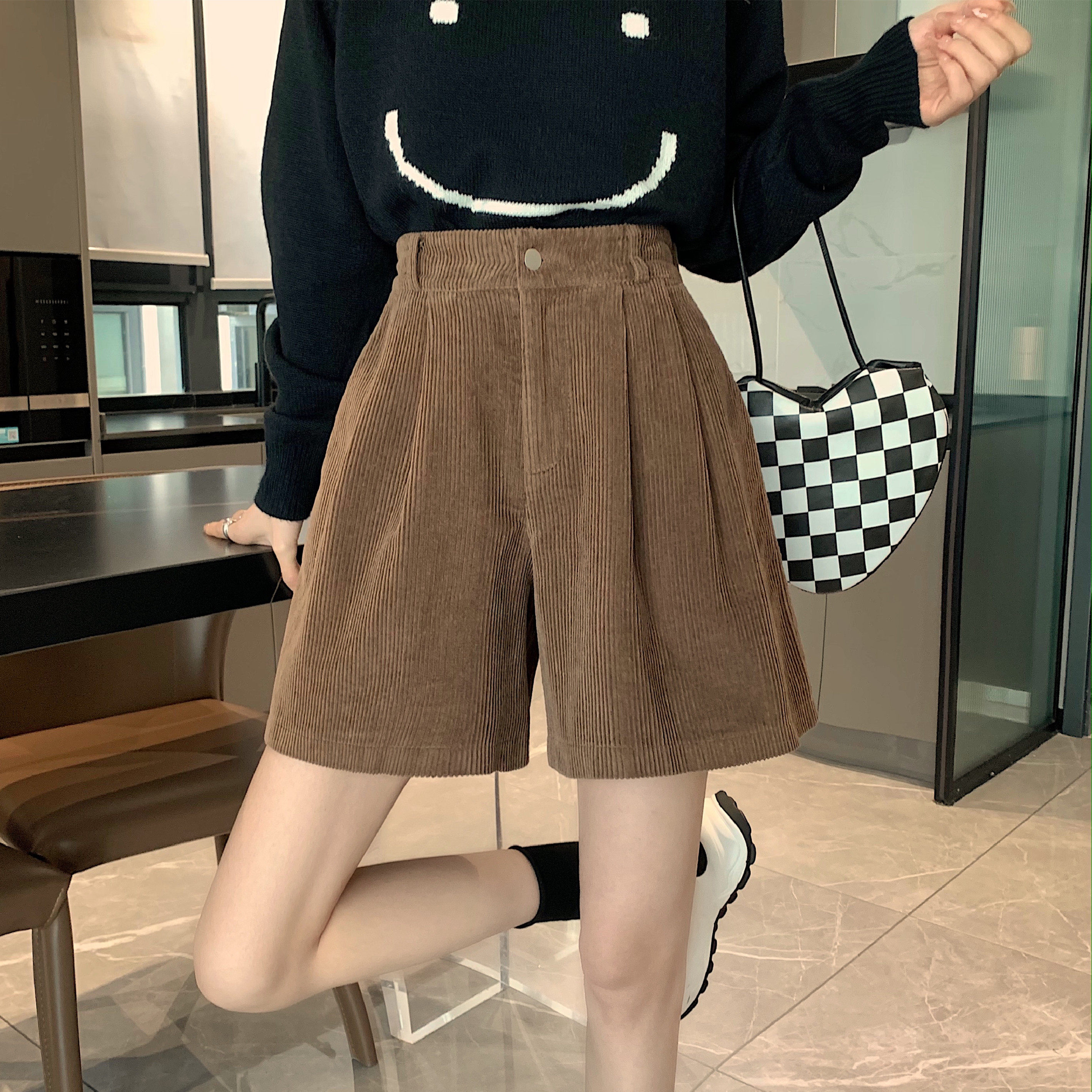Ретро вельветовые демисезонные шорты, приталенные леггинсы, штаны, эластичная талия, свободный прямой крой