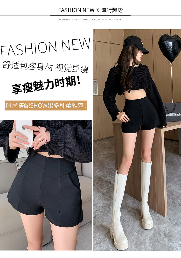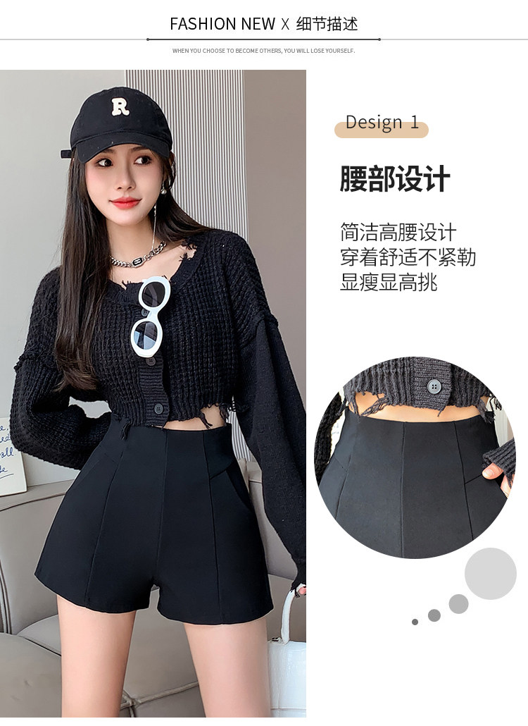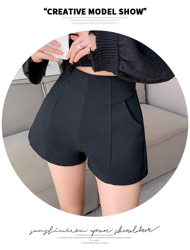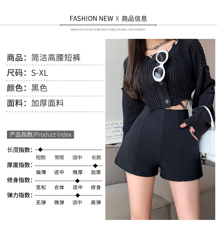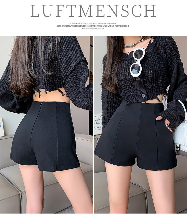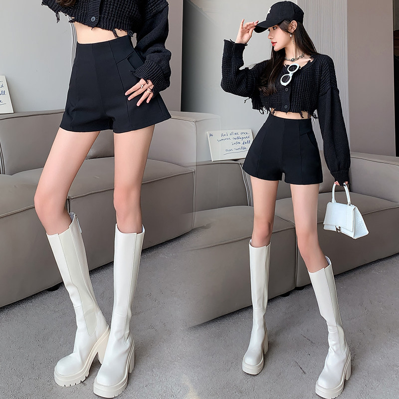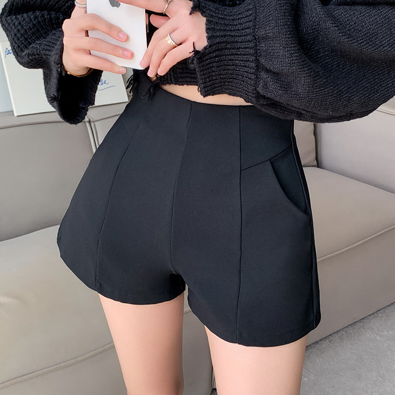 Черный костюм для отдыха, шорты, осенние приталенные базовые штаны, 2023, высокая талия, А-силуэт, свободный крой