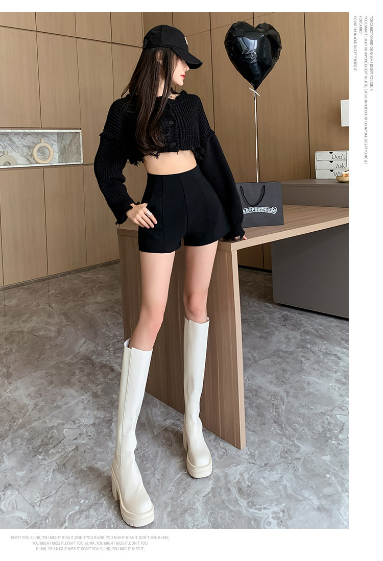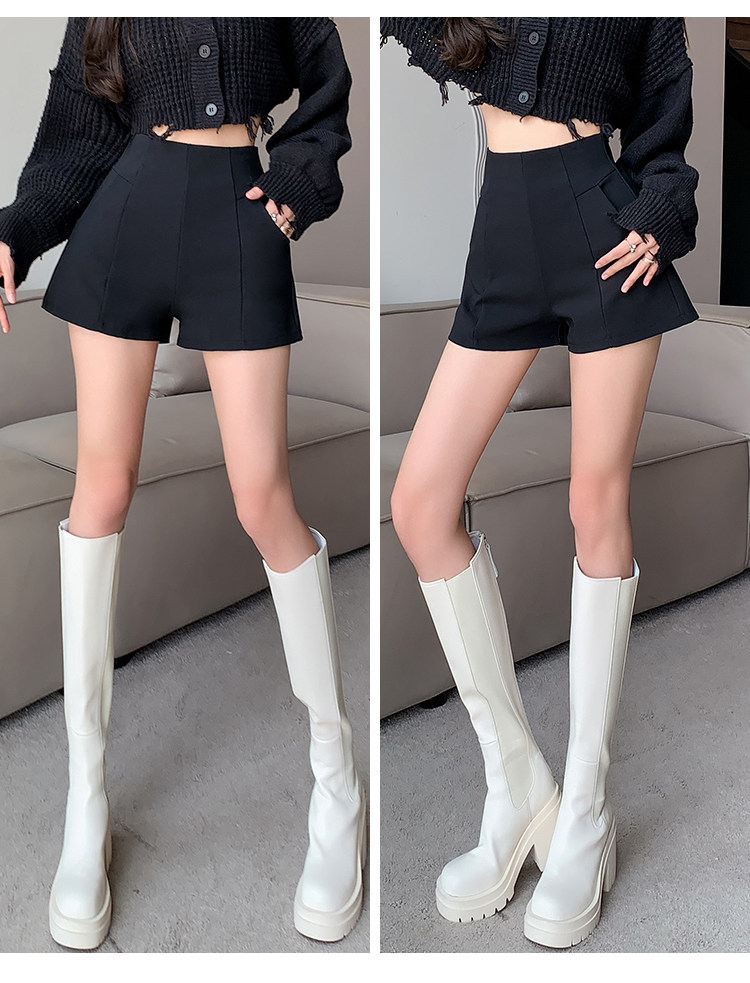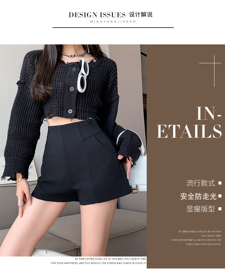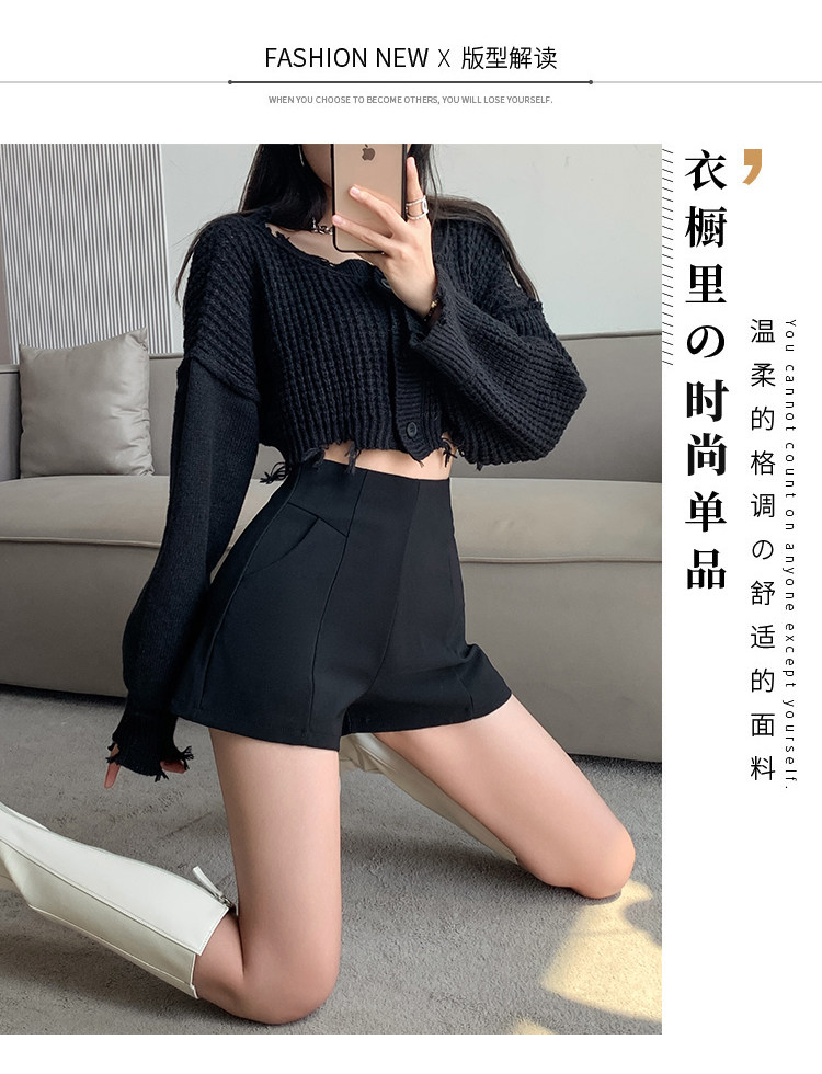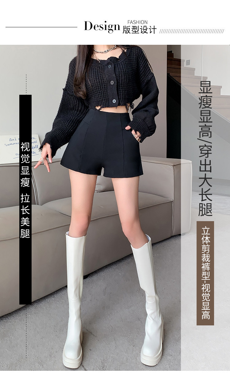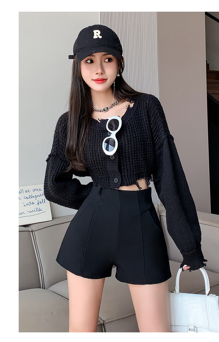 Черный костюм для отдыха, шорты, осенние приталенные базовые штаны, 2023, высокая талия, А-силуэт, свободный крой