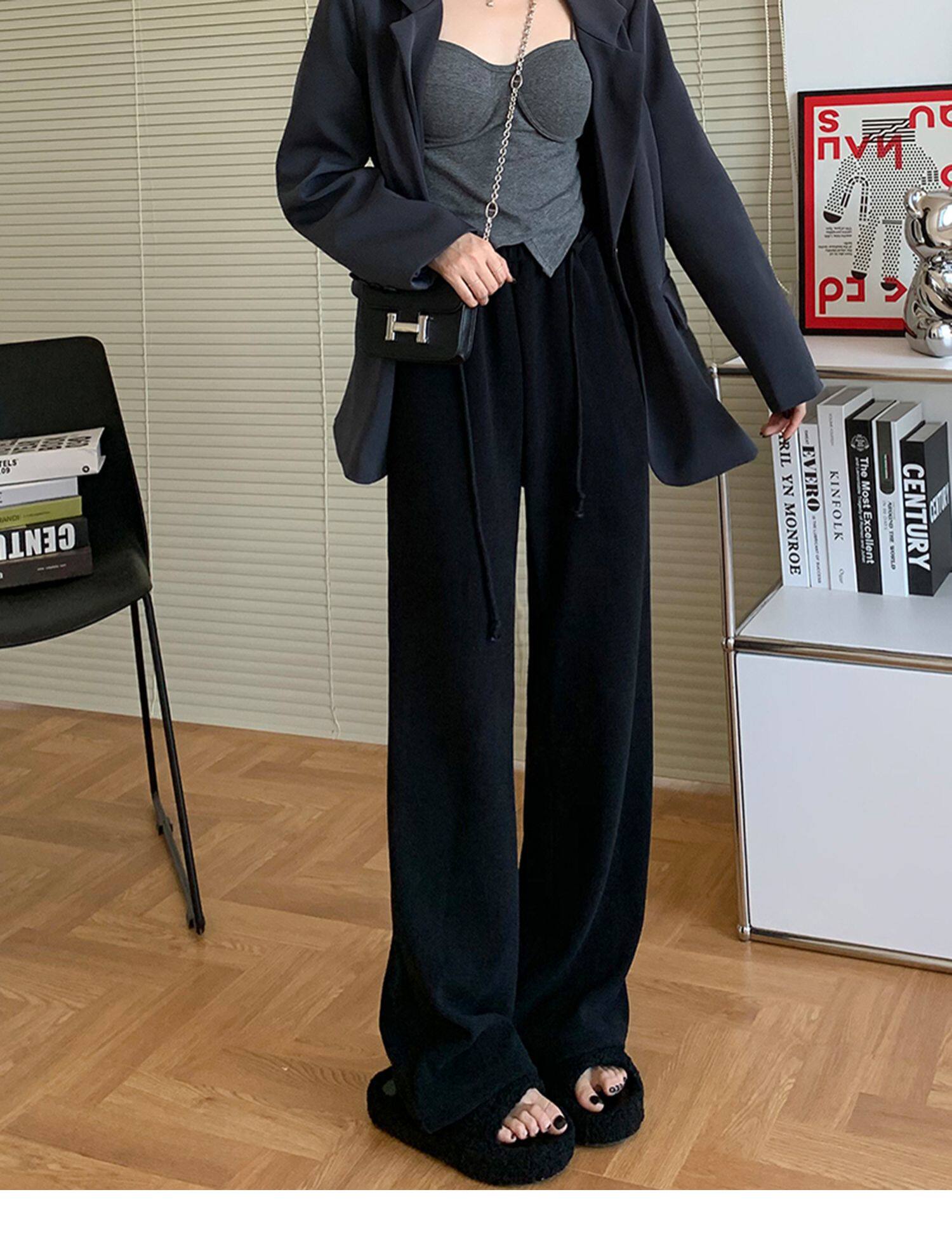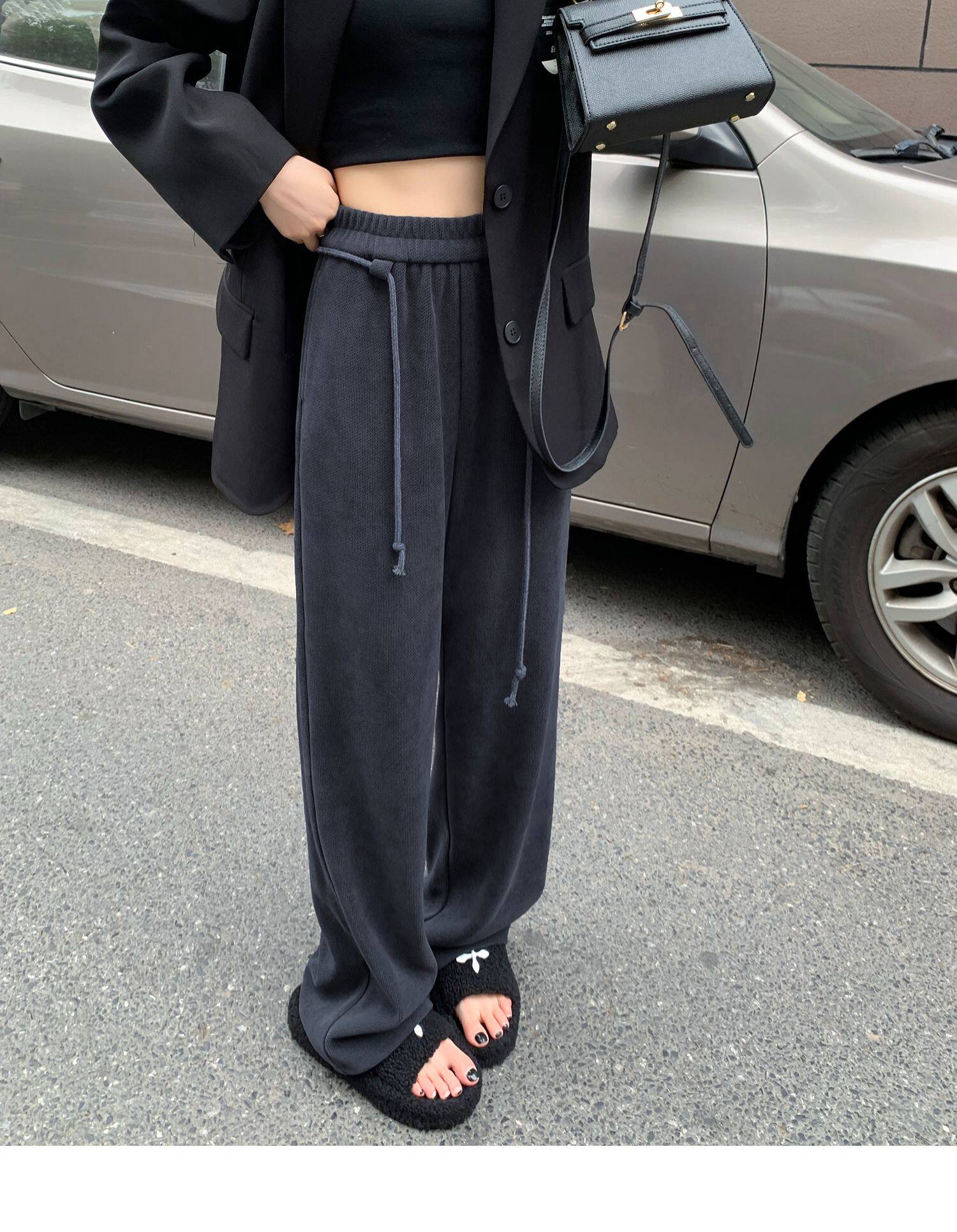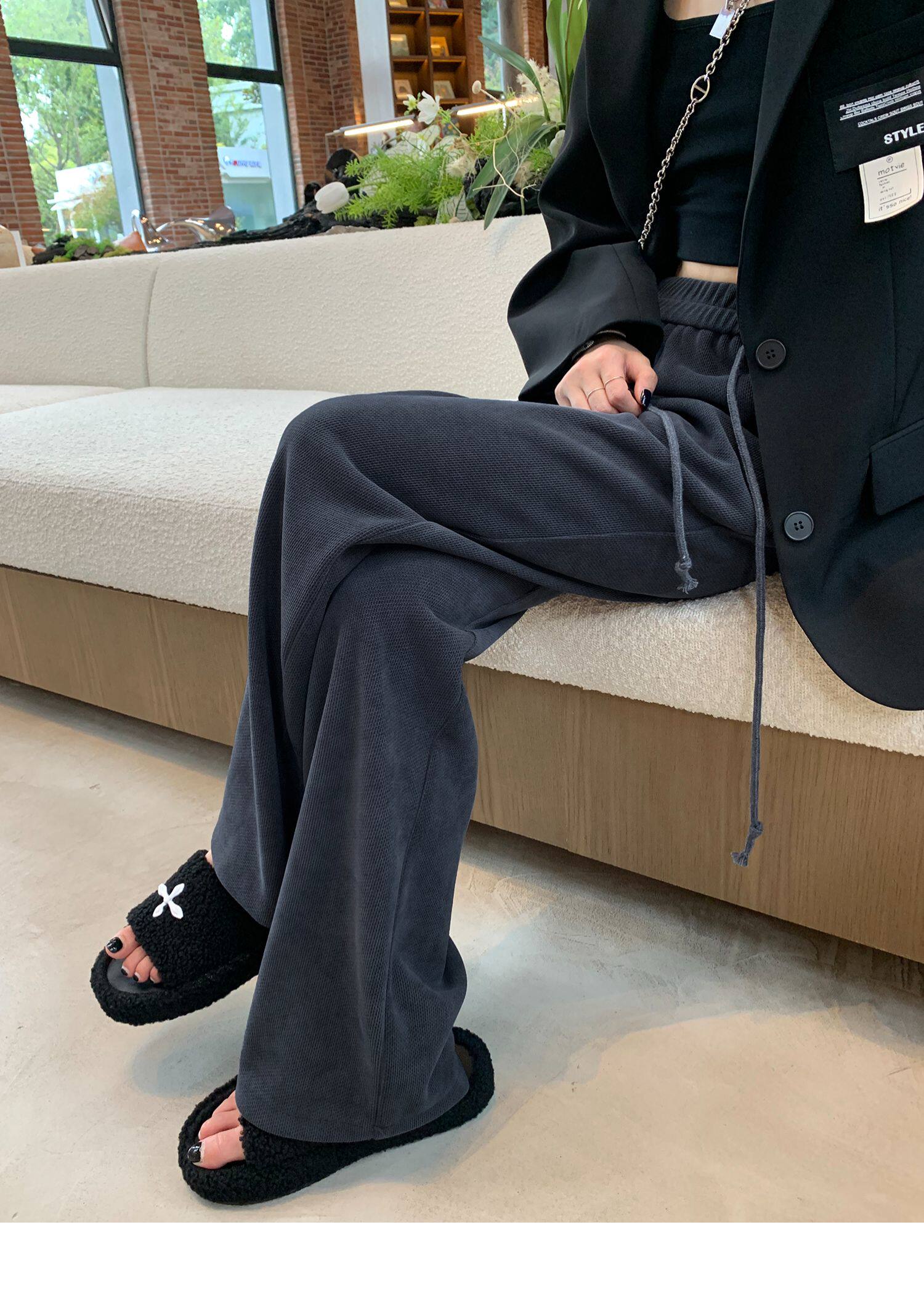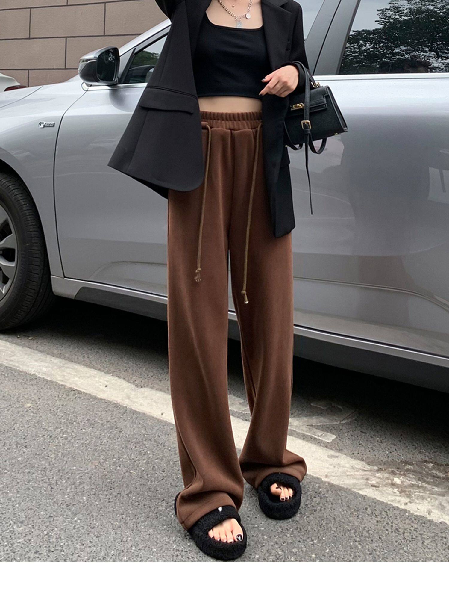 Демисезонные трикотажные штаны для отдыха, высокая талия, свободный прямой крой