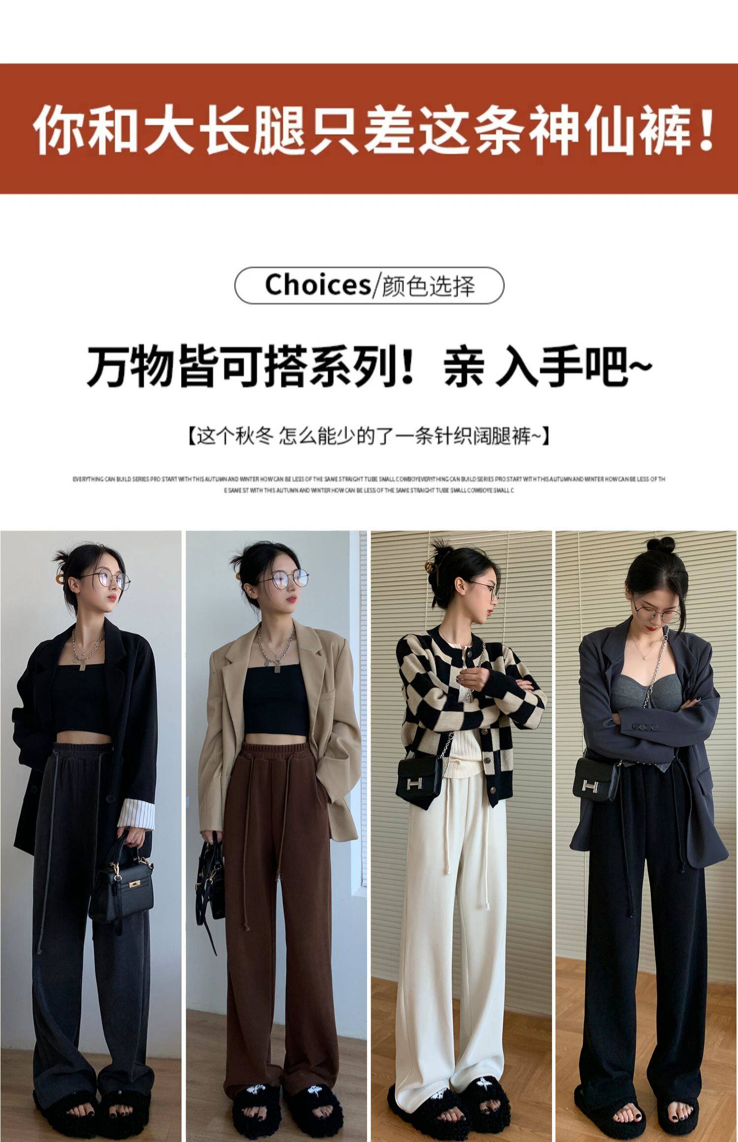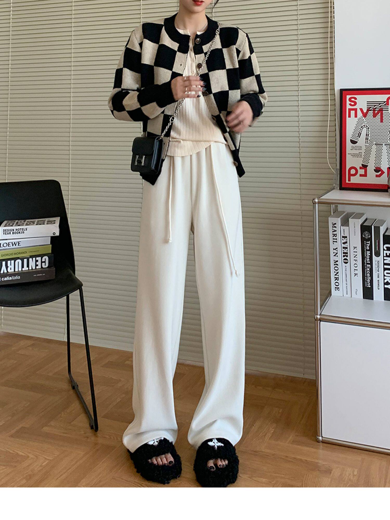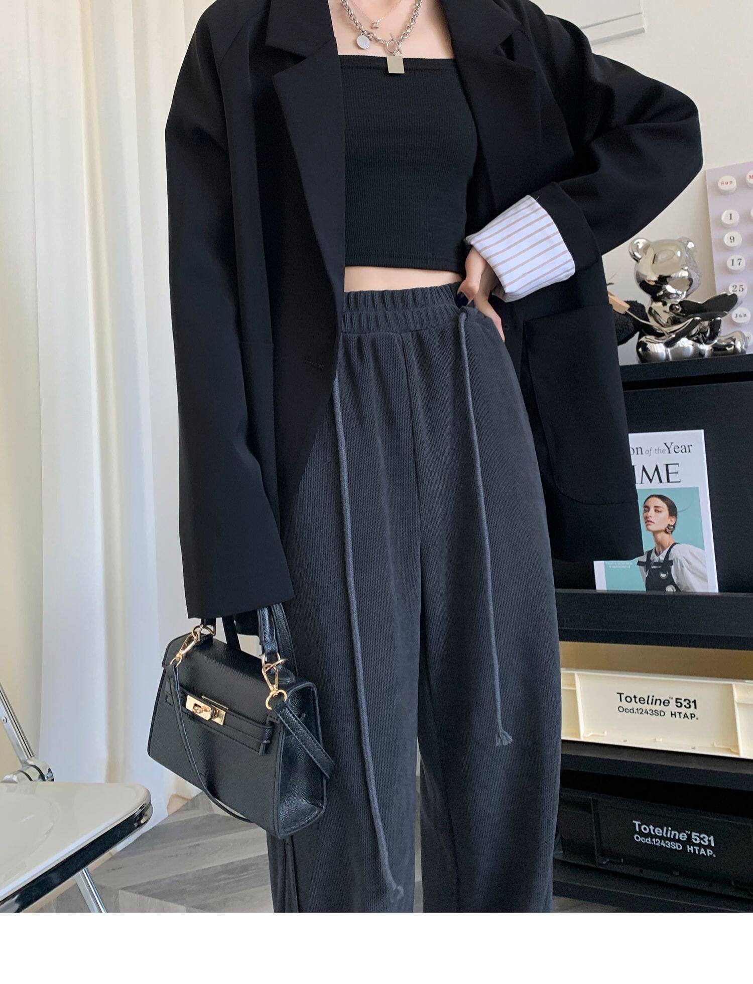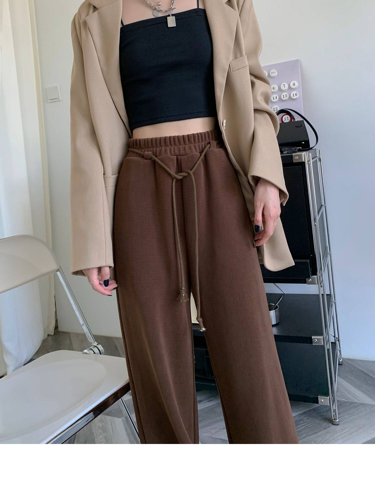 Демисезонные трикотажные штаны для отдыха, высокая талия, свободный прямой крой