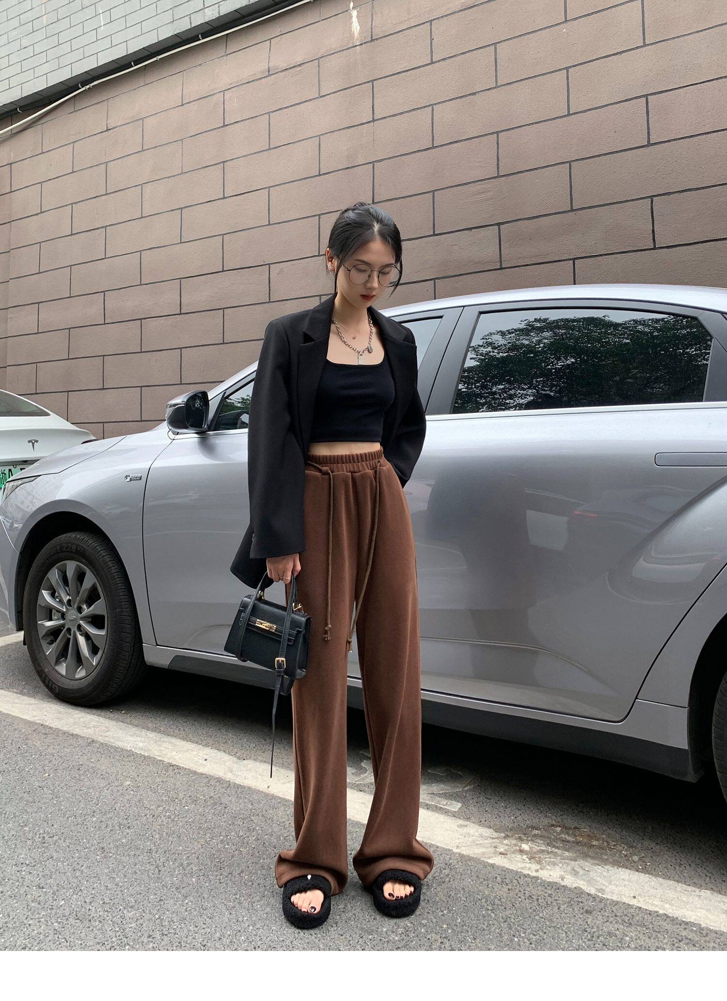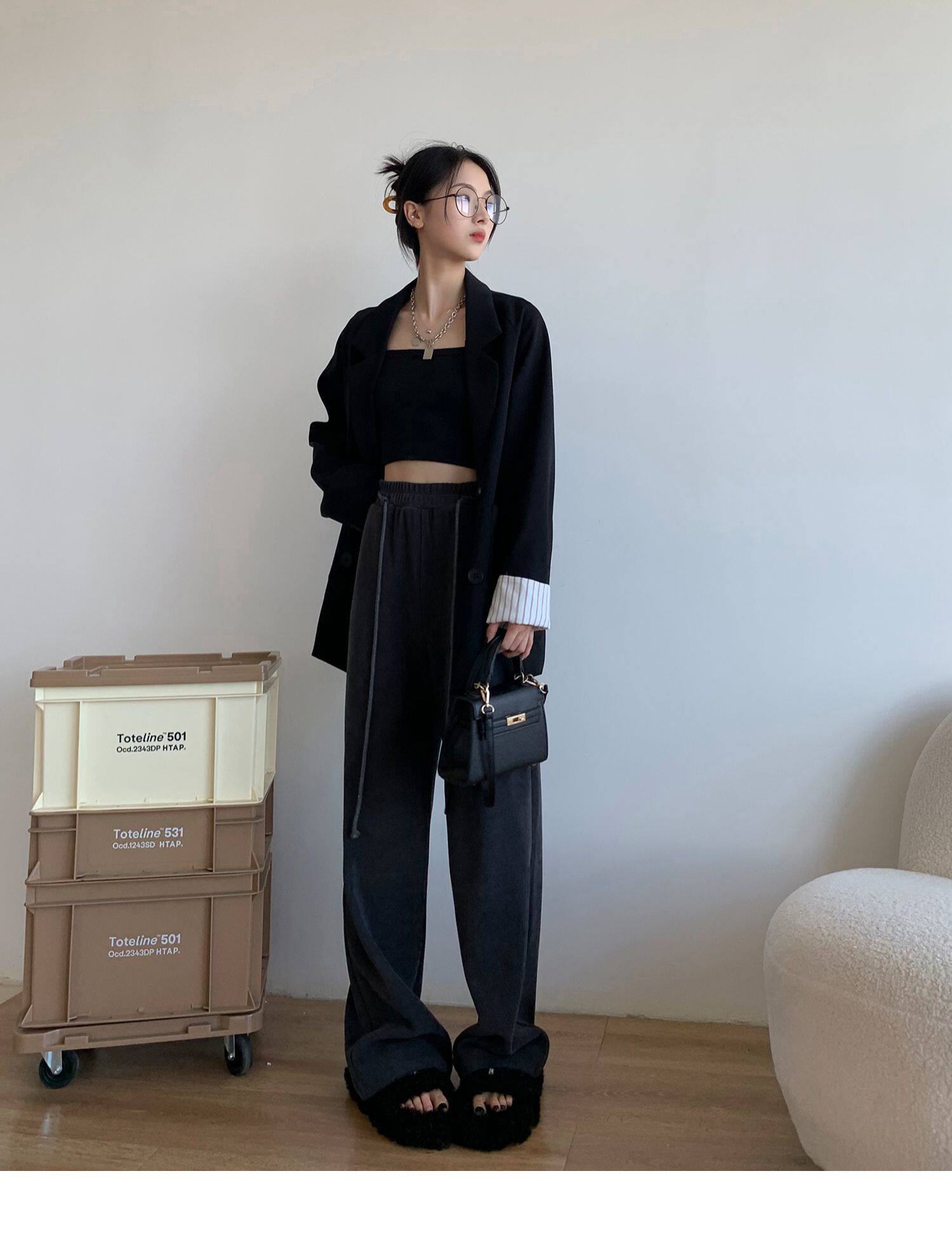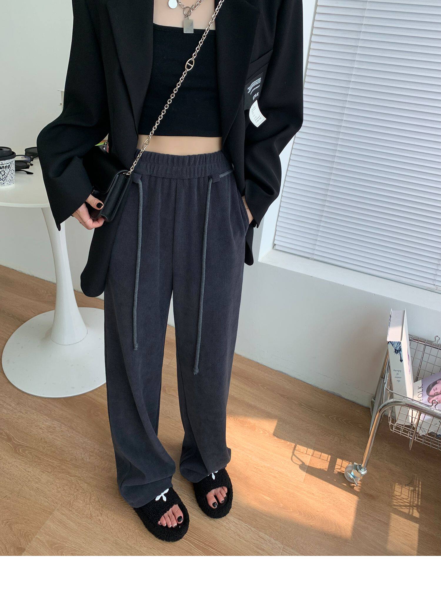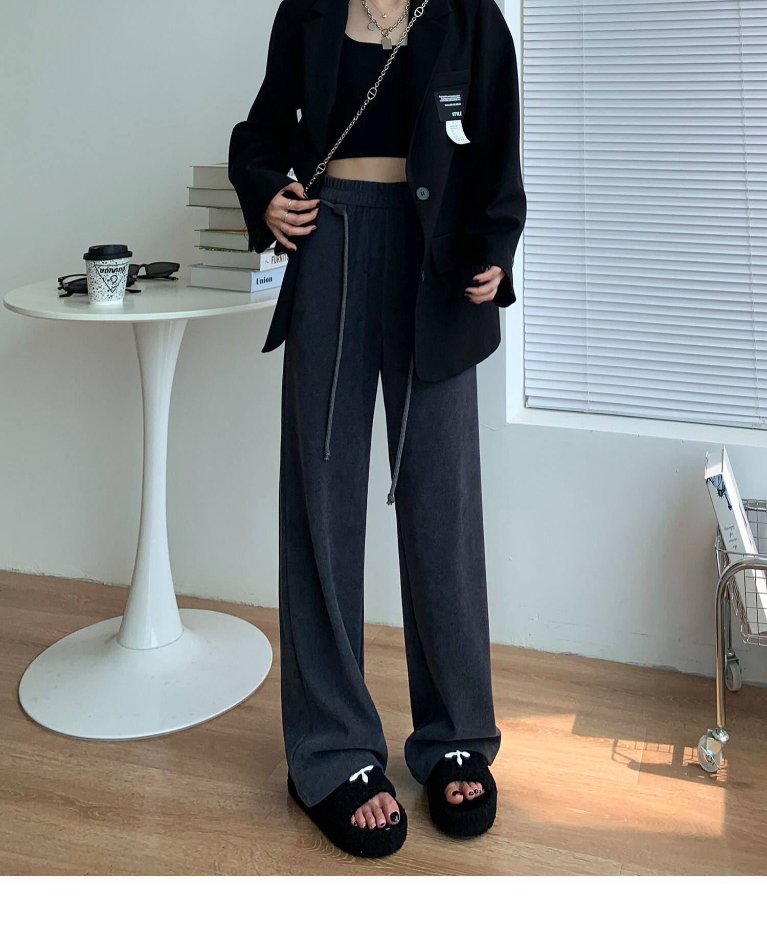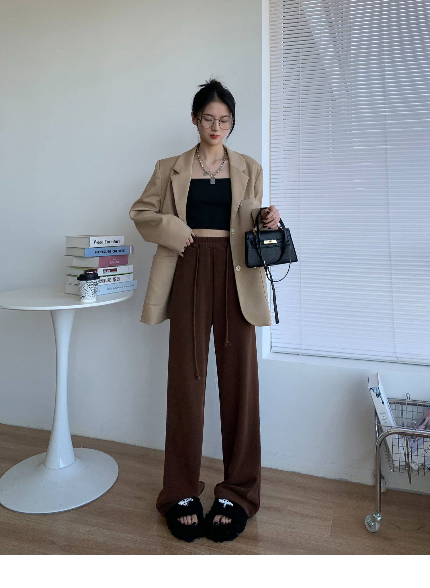 Демисезонные трикотажные штаны для отдыха, высокая талия, свободный прямой крой