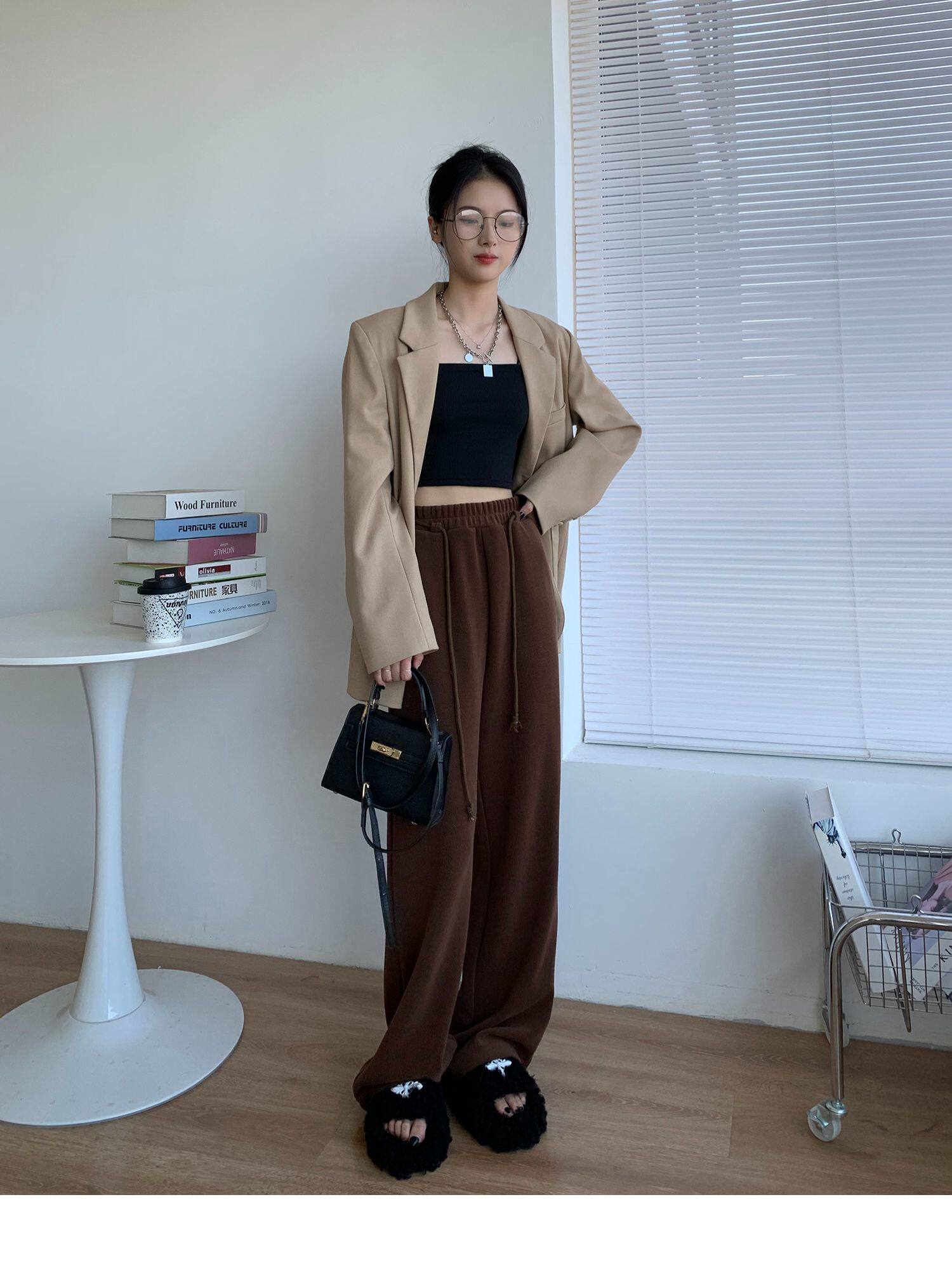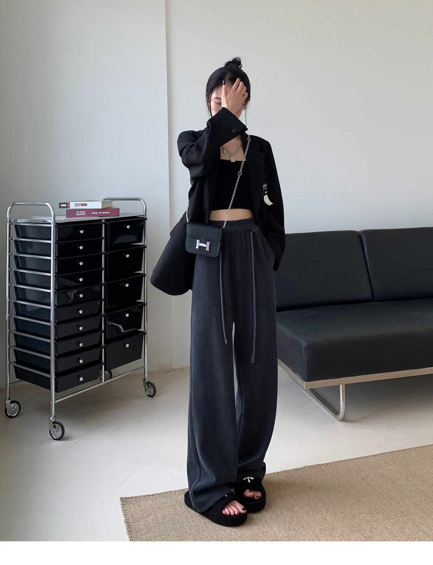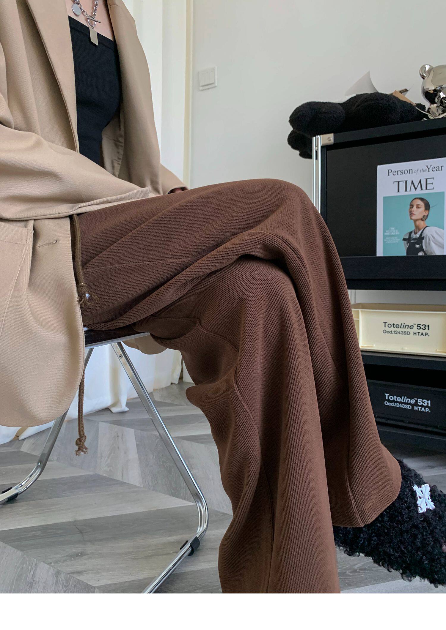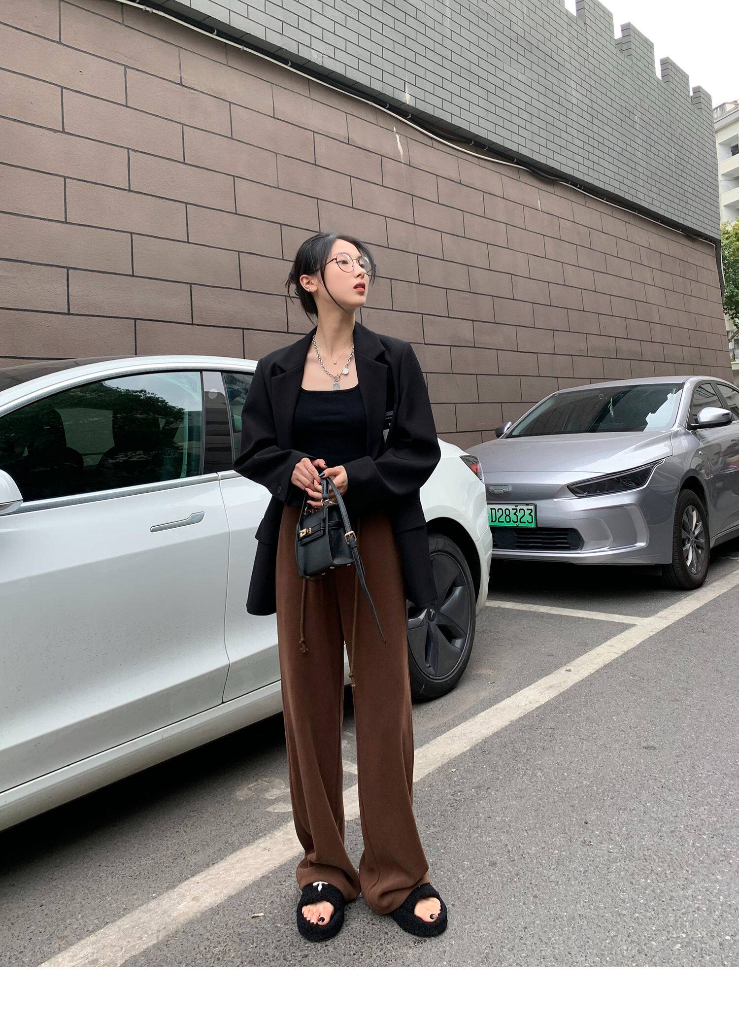 Демисезонные трикотажные штаны для отдыха, высокая талия, свободный прямой крой