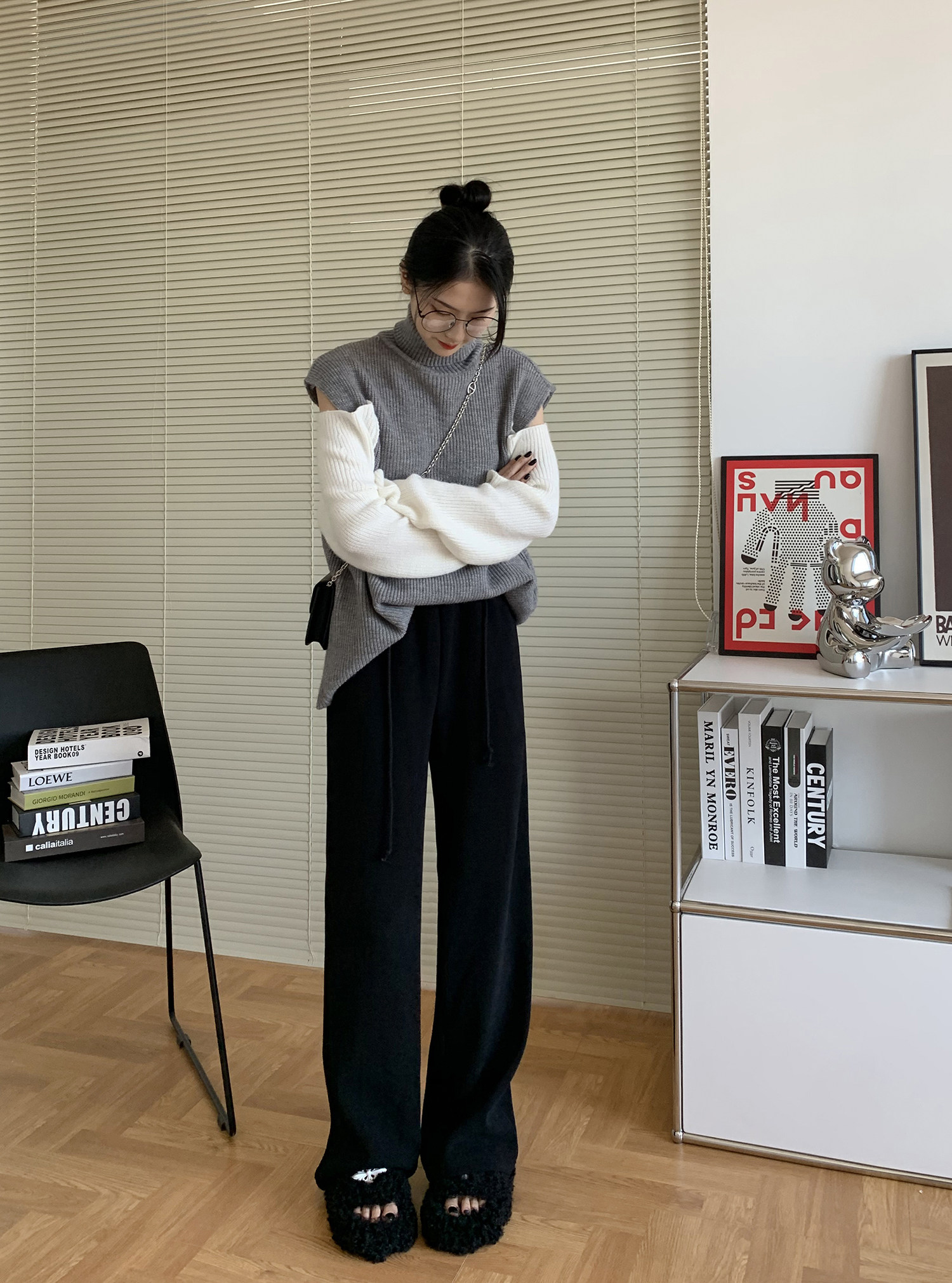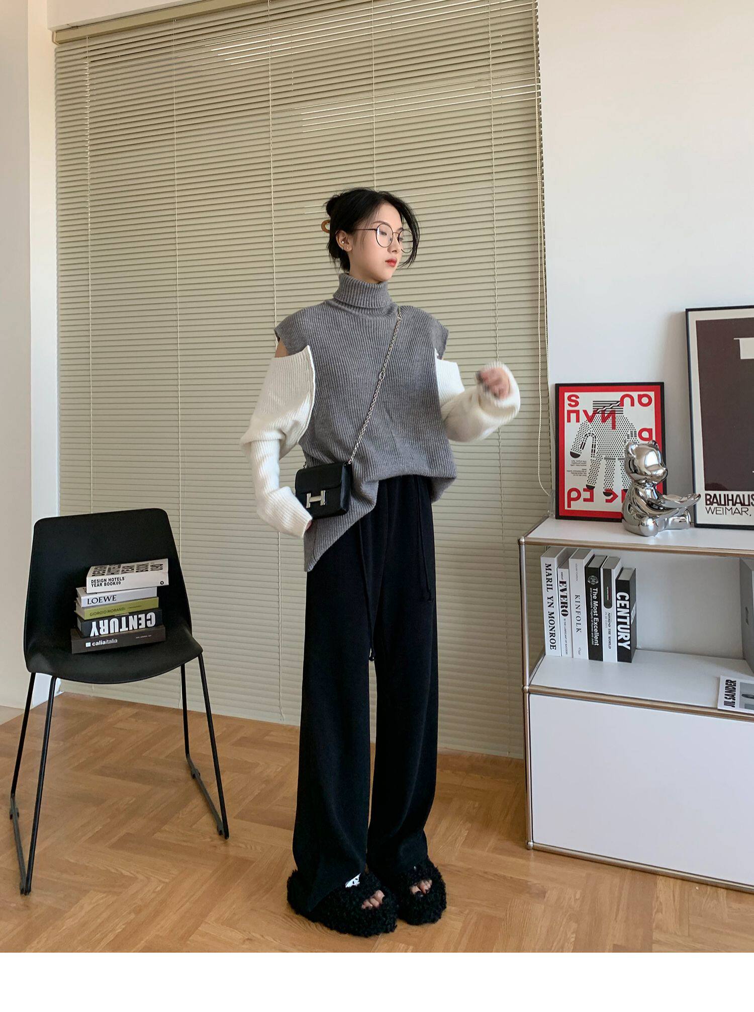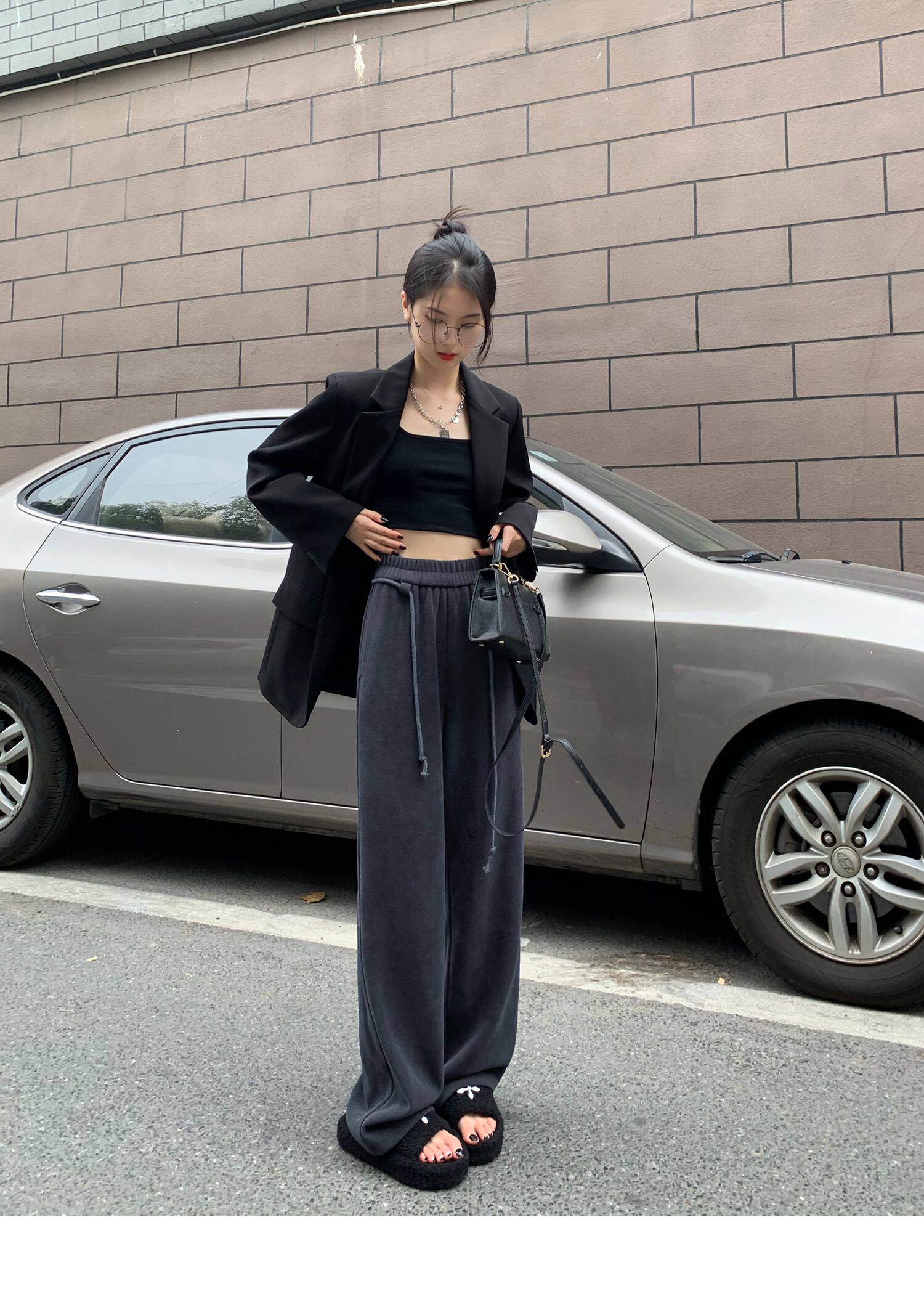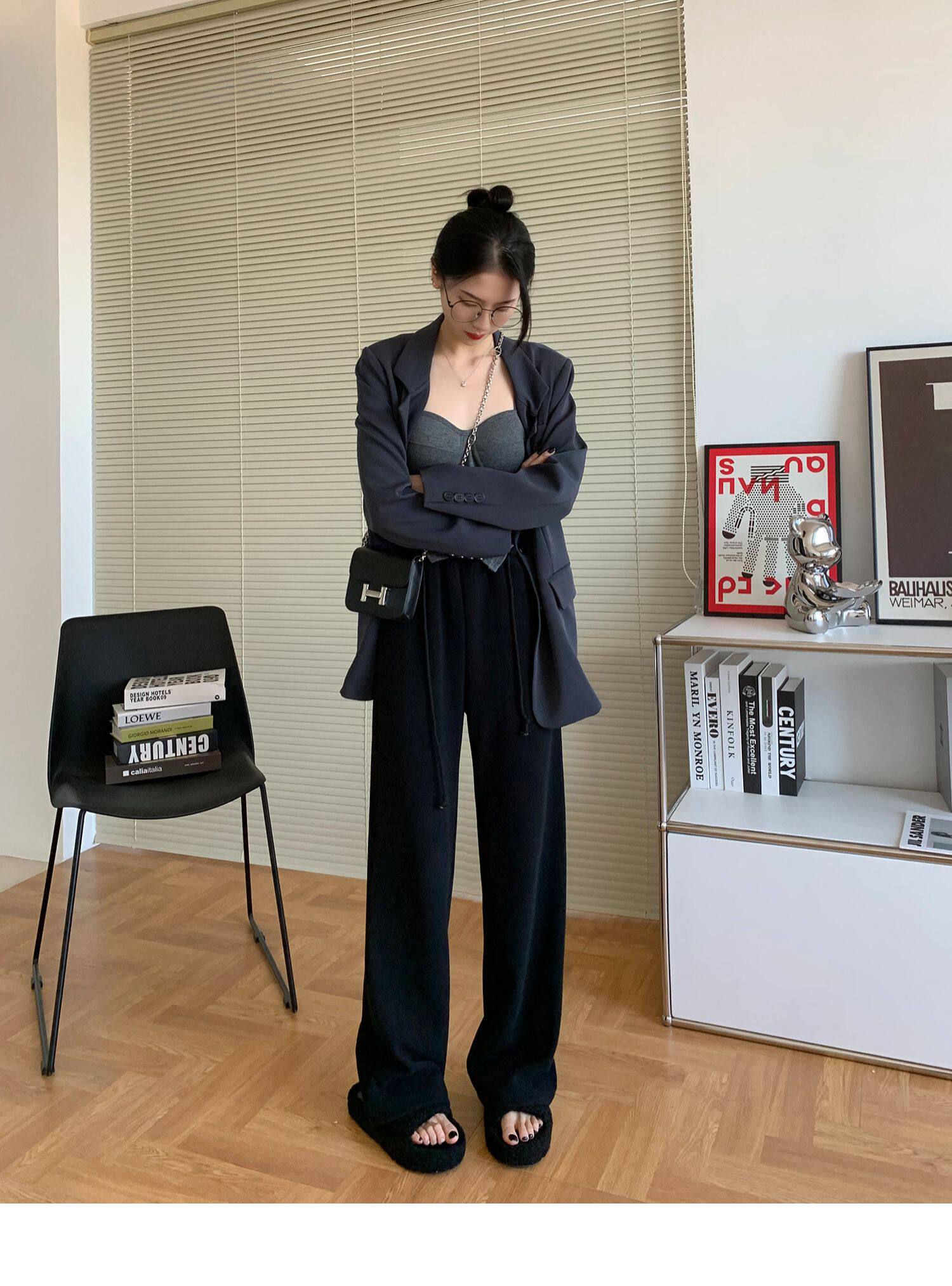 Демисезонные трикотажные штаны для отдыха, высокая талия, свободный прямой крой