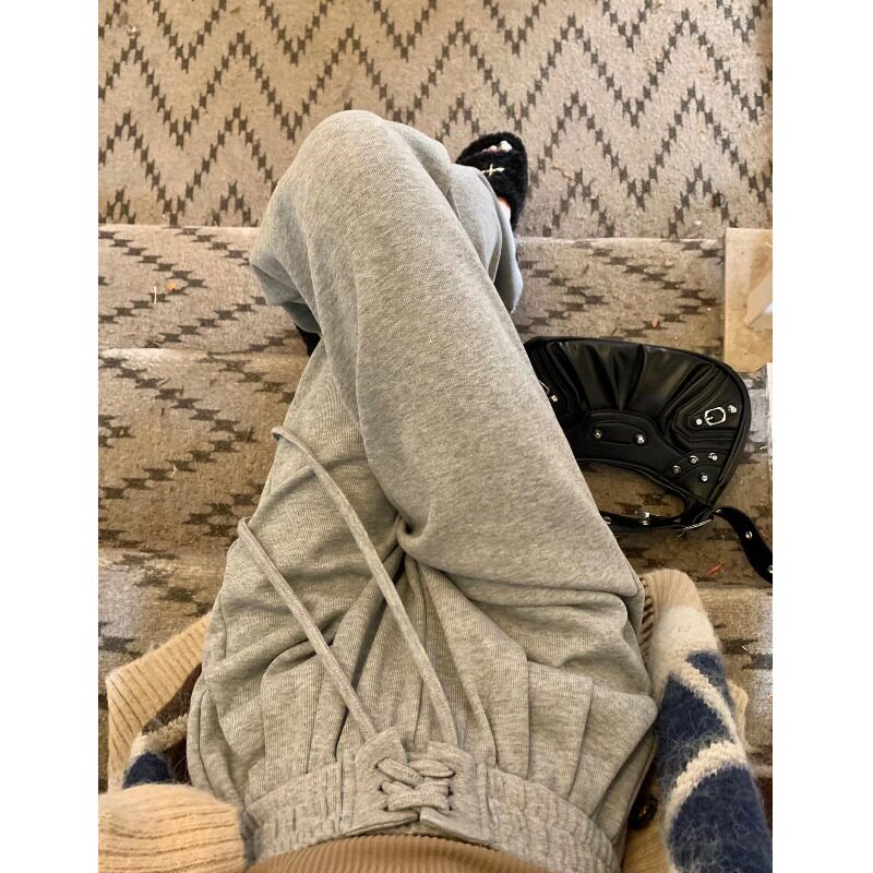 Спортивные осенние штаны, приталенный ремень, коллекция 2023, высокая талия, свободный прямой крой