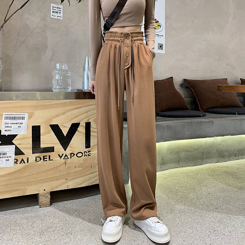 Tide, осенние демисезонные повседневные брюки, штаны, высокая талия, на шнурках, свободный крой, в американском стиле