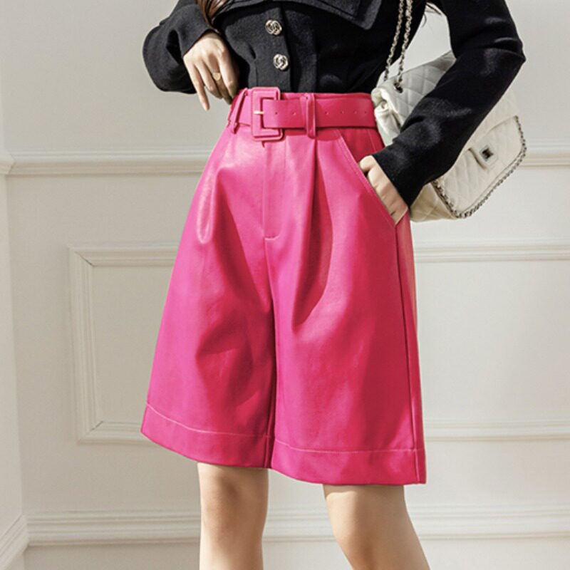 Штаны, цветные шорты, А-силуэт, свободный крой, высокая талия, для формы тела «груша»