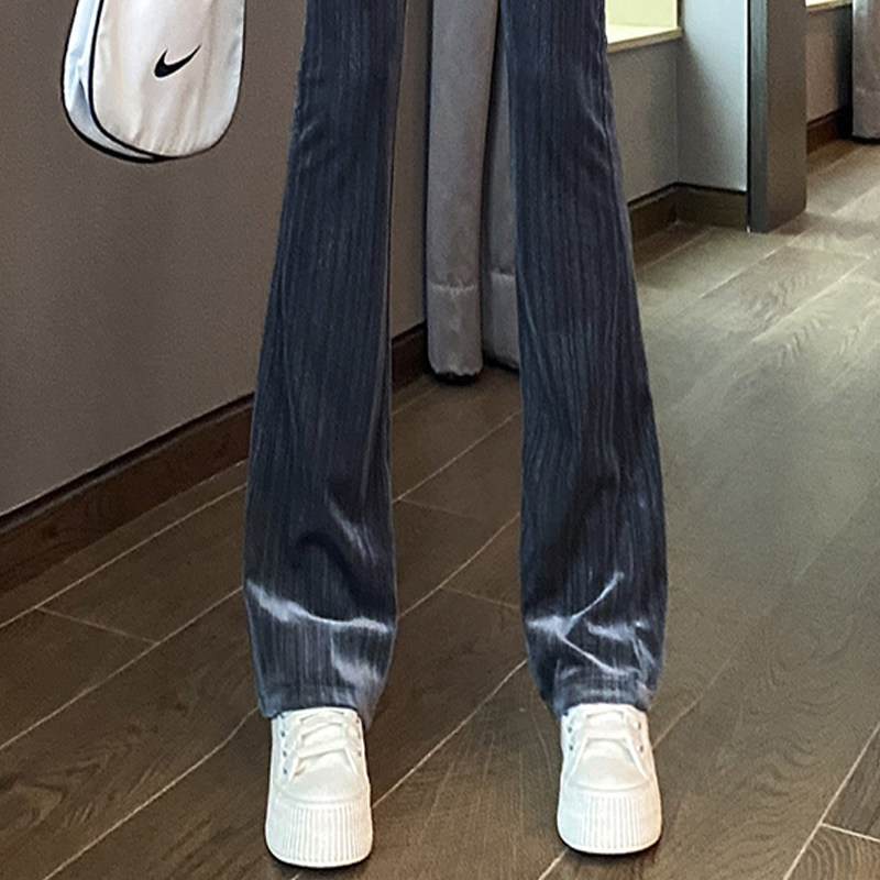 Бархатные демисезонные леггинсы, приталенные штаны для отдыха, штаны-клёш, высокая талия