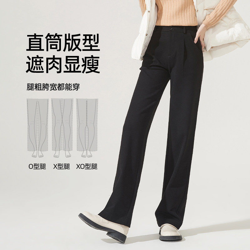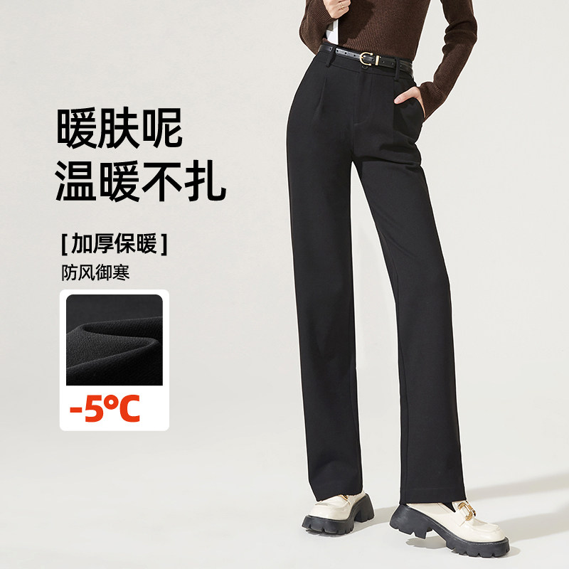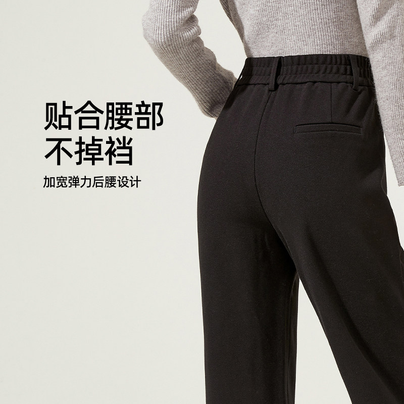 Осенние черные шерстяные штаны, повседневные брюки для отдыха, высокая талия, свободный прямой крой