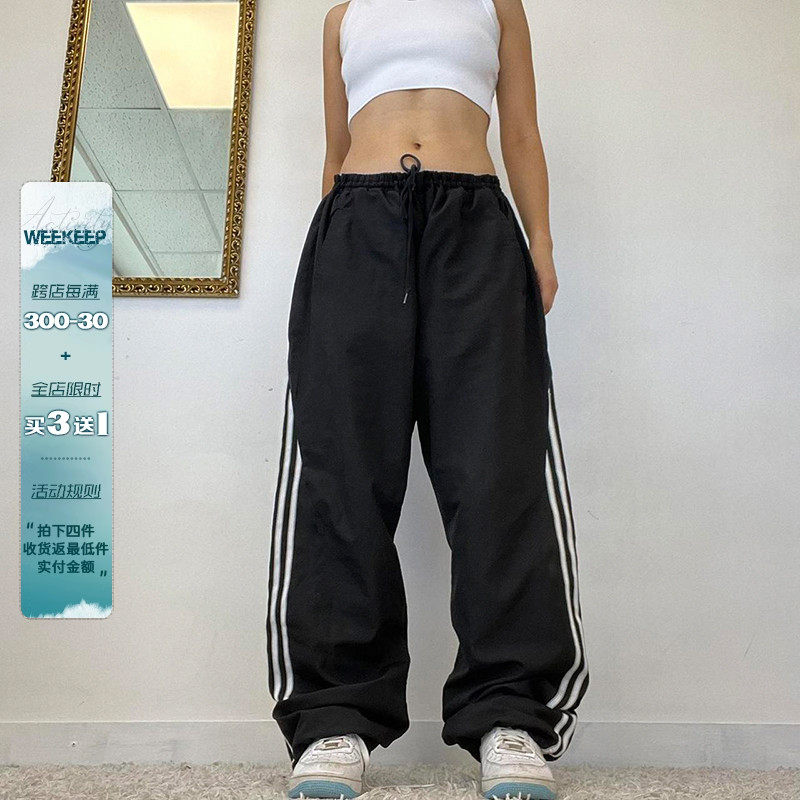 WEEKEEP Штаны для отдыха, эластичная талия, на шнурках, свободный прямой крой