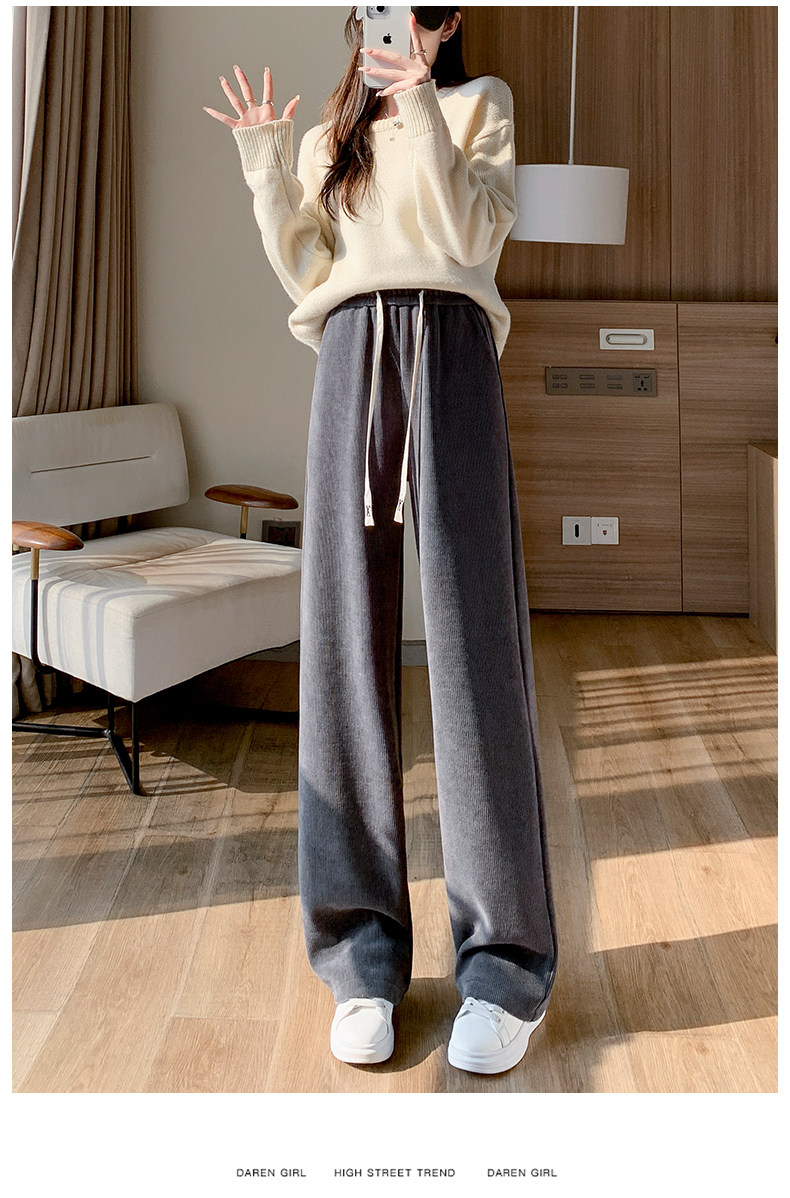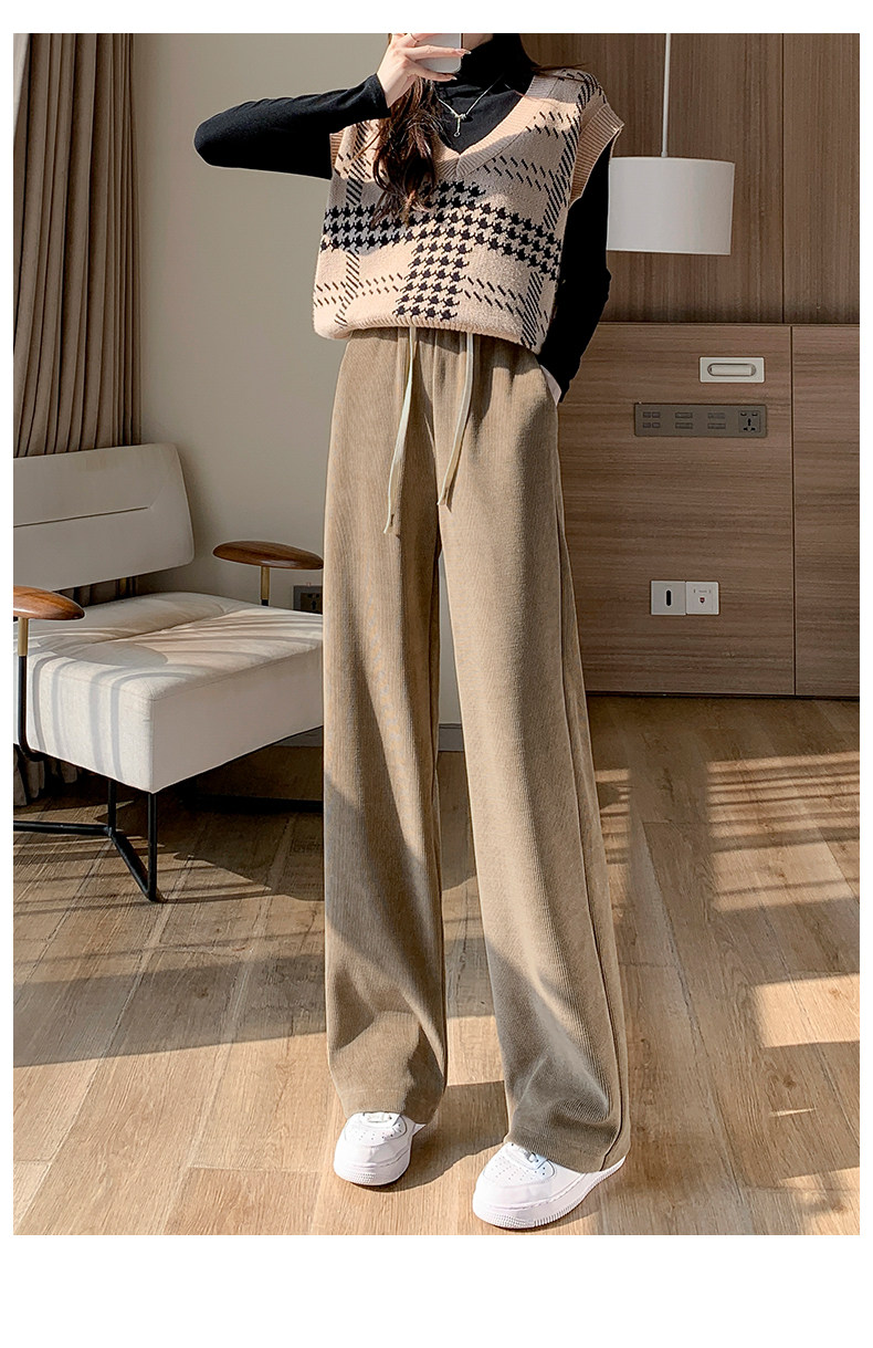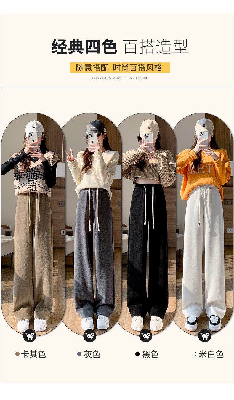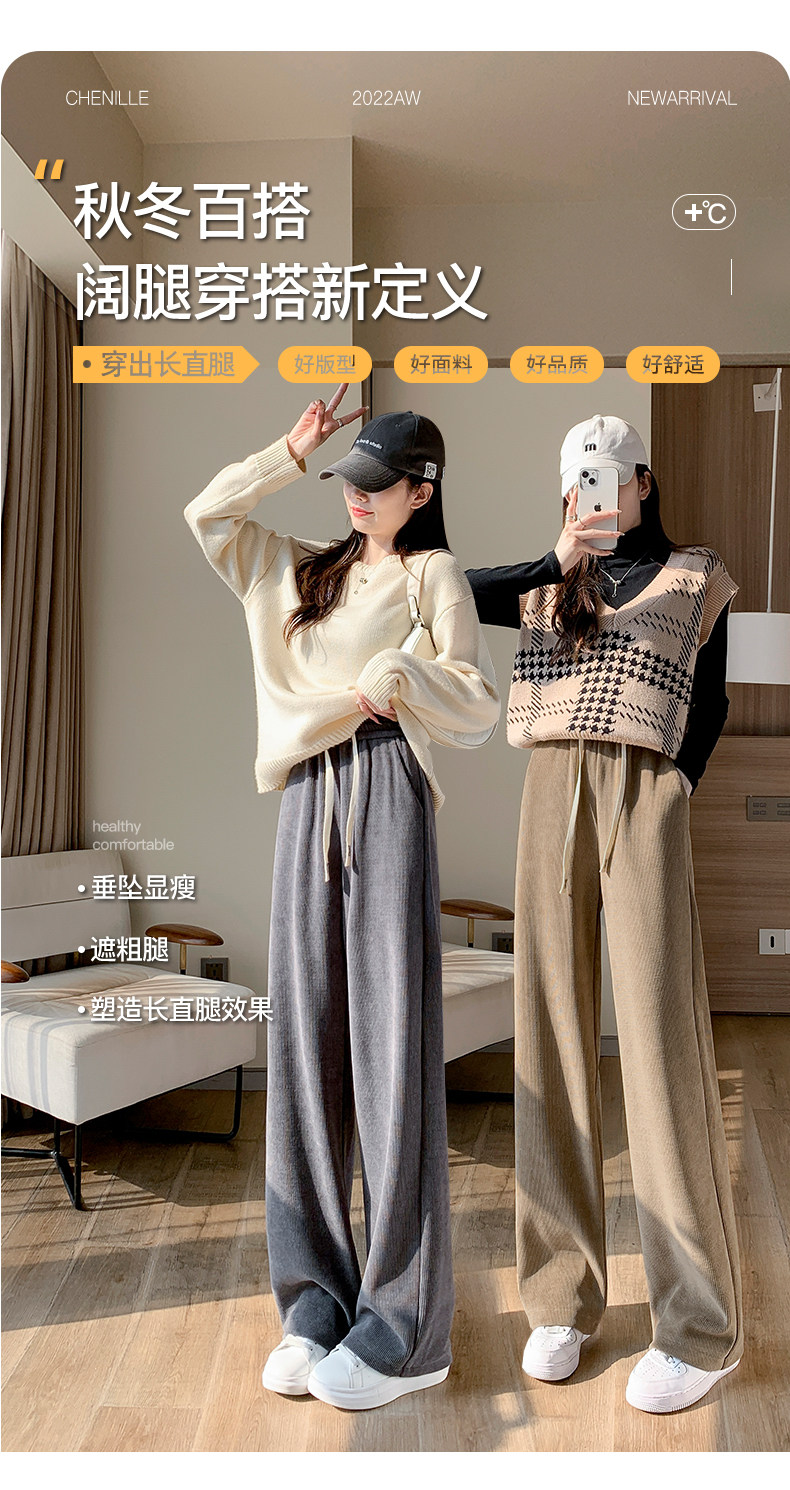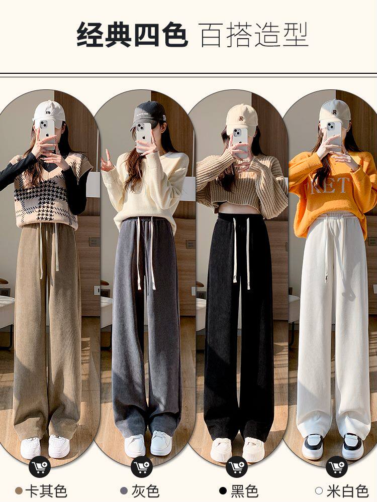 Демисезонный клейкий рис, коричневые флисовые вельветовые штаны, коллекция 2023, подходит для подростков, свободный прямой крой