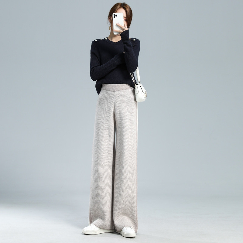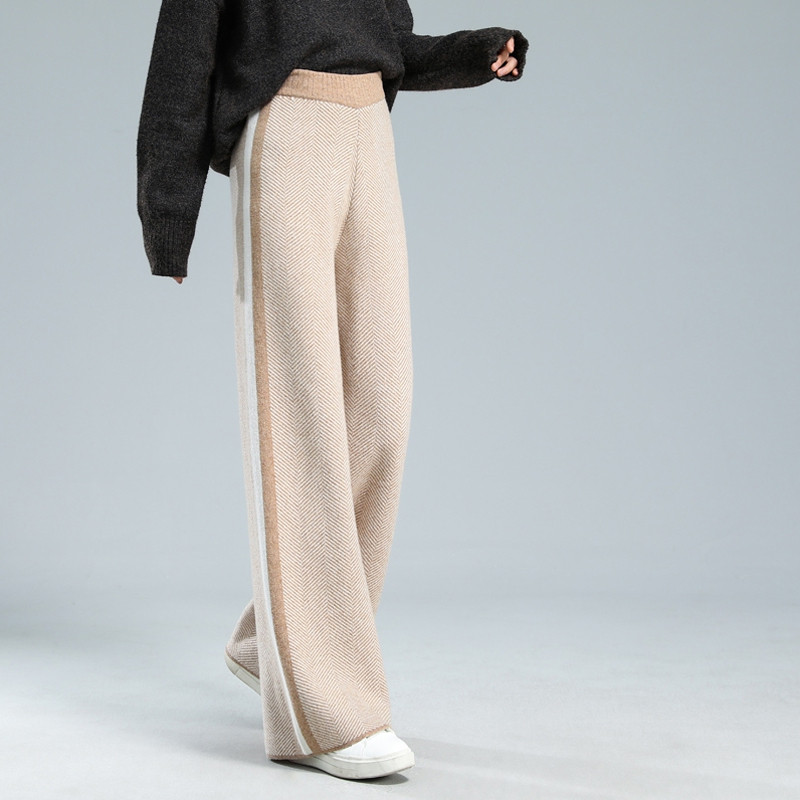 Шерстяные демисезонные трикотажные штаны, увеличенная толщина, высокая талия, свободный прямой крой