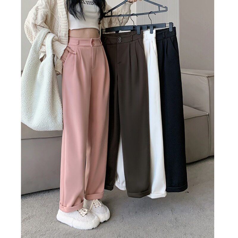 Демисезонные повседневные брюки, костюм, черные штаны, высокая талия, свободный прямой крой, увеличенная толщина