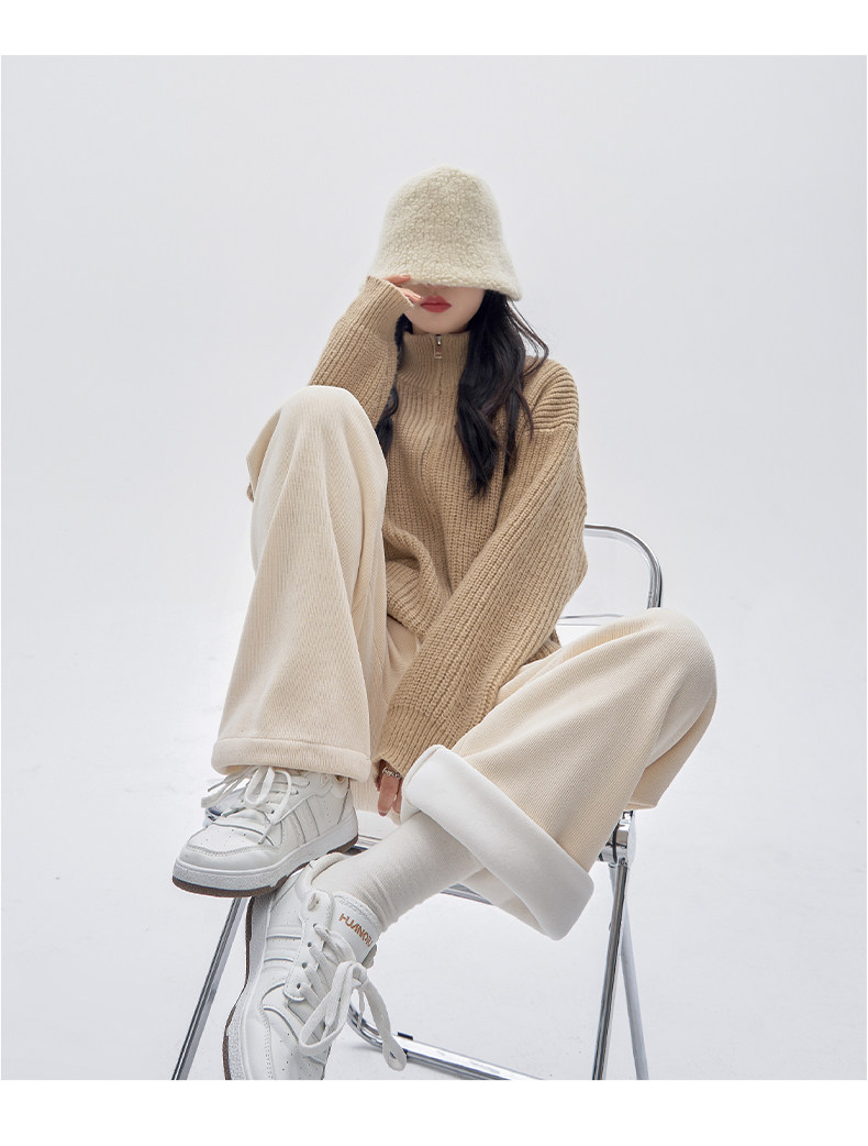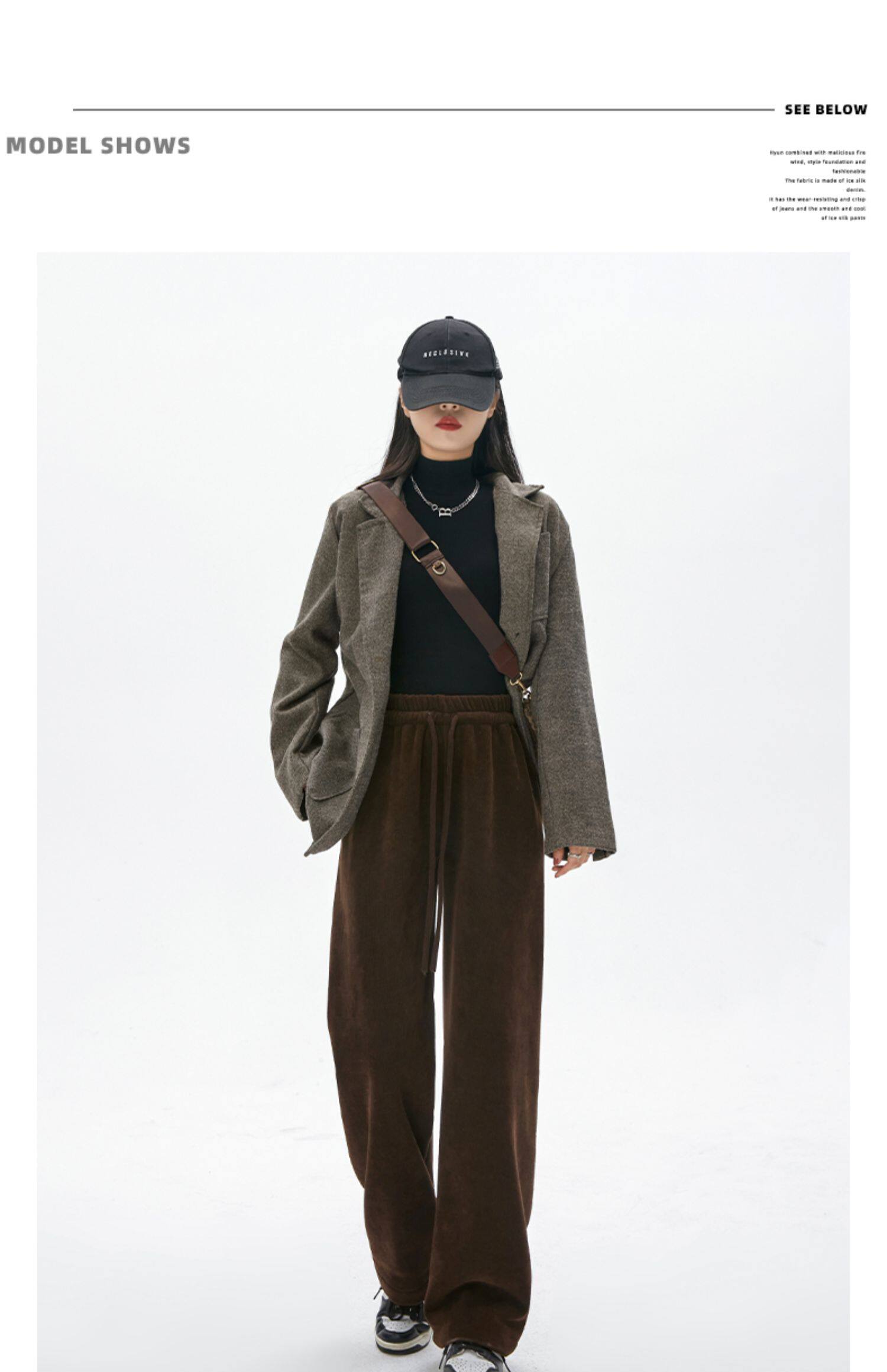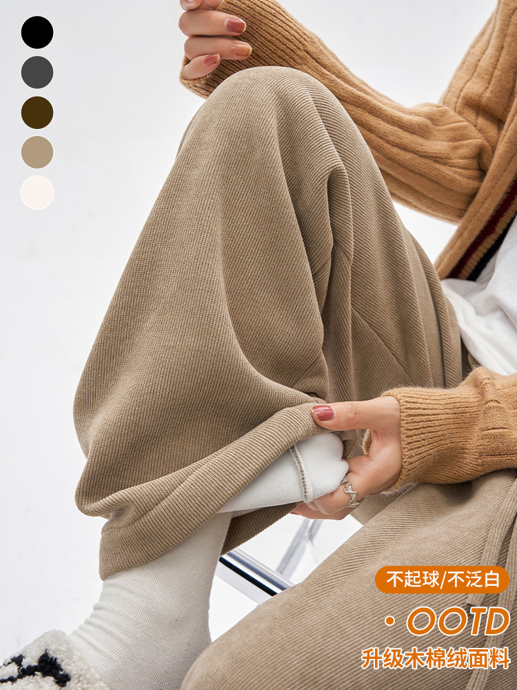 Демисезонные бархатные коричневые кашемировые штаны для отдыха, свободный прямой крой, оверсайз