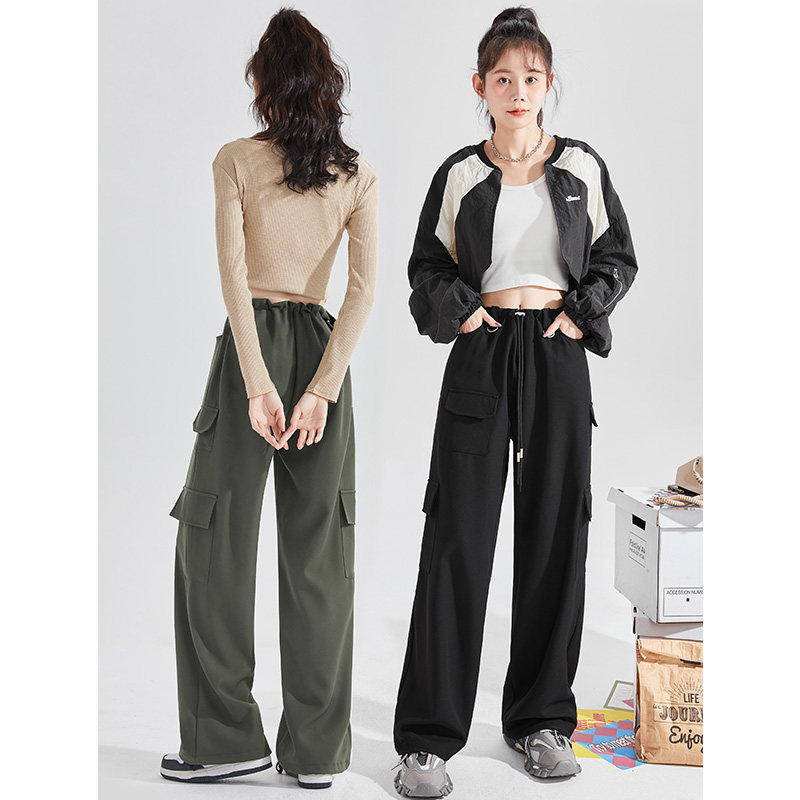 Ретро штаны, черные летние повседневные брюки для отдыха, в американском стиле, свободный крой