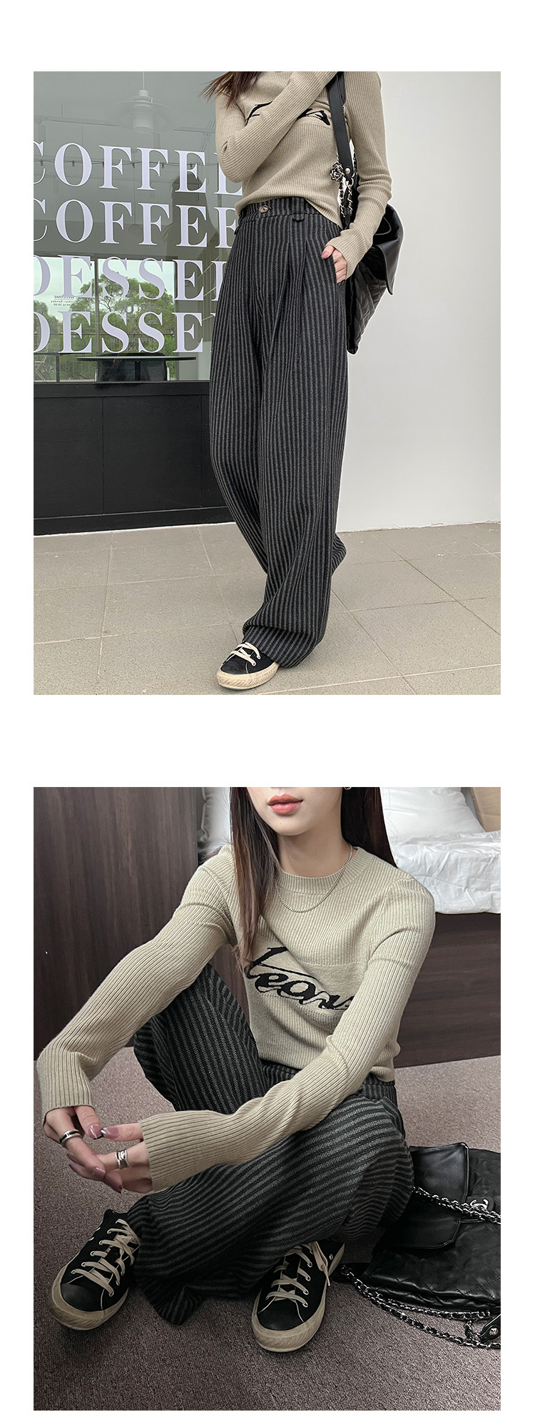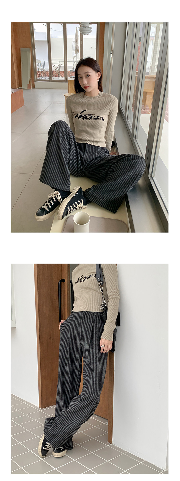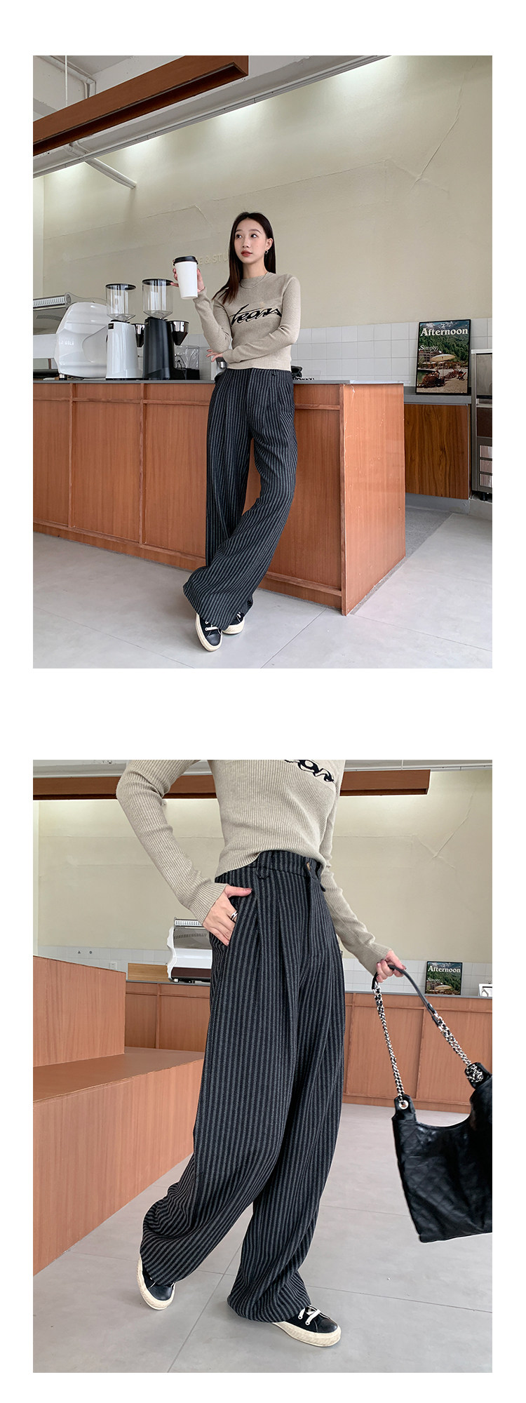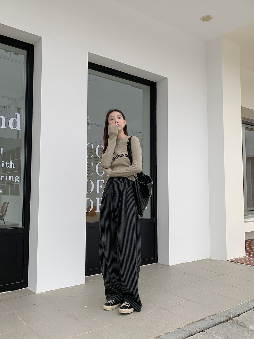 Демисезонные приталенные черные штаны, свободный прямой крой, высокая талия