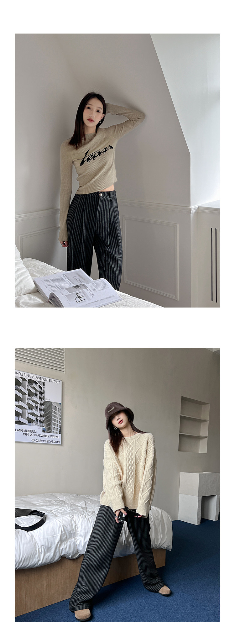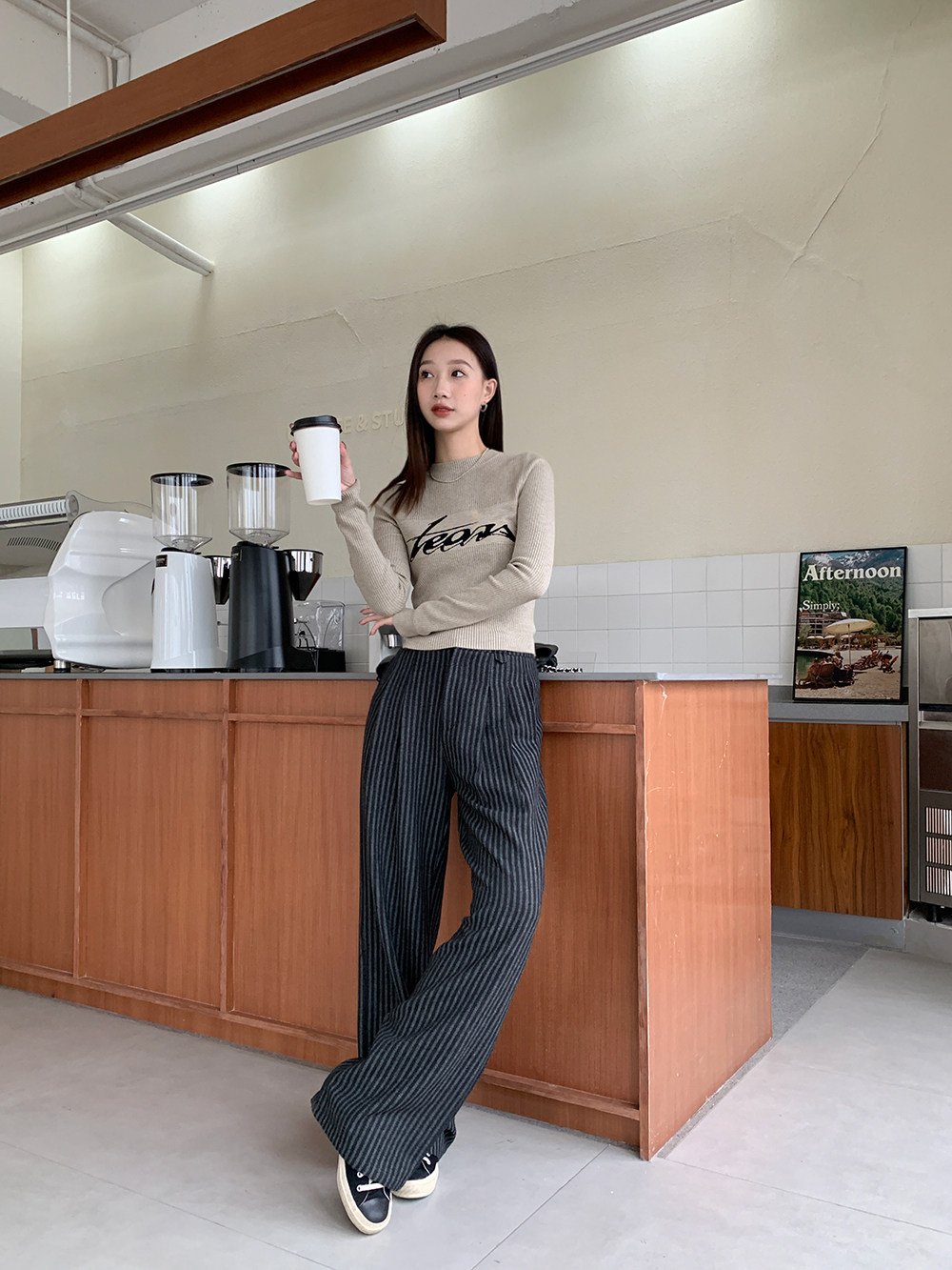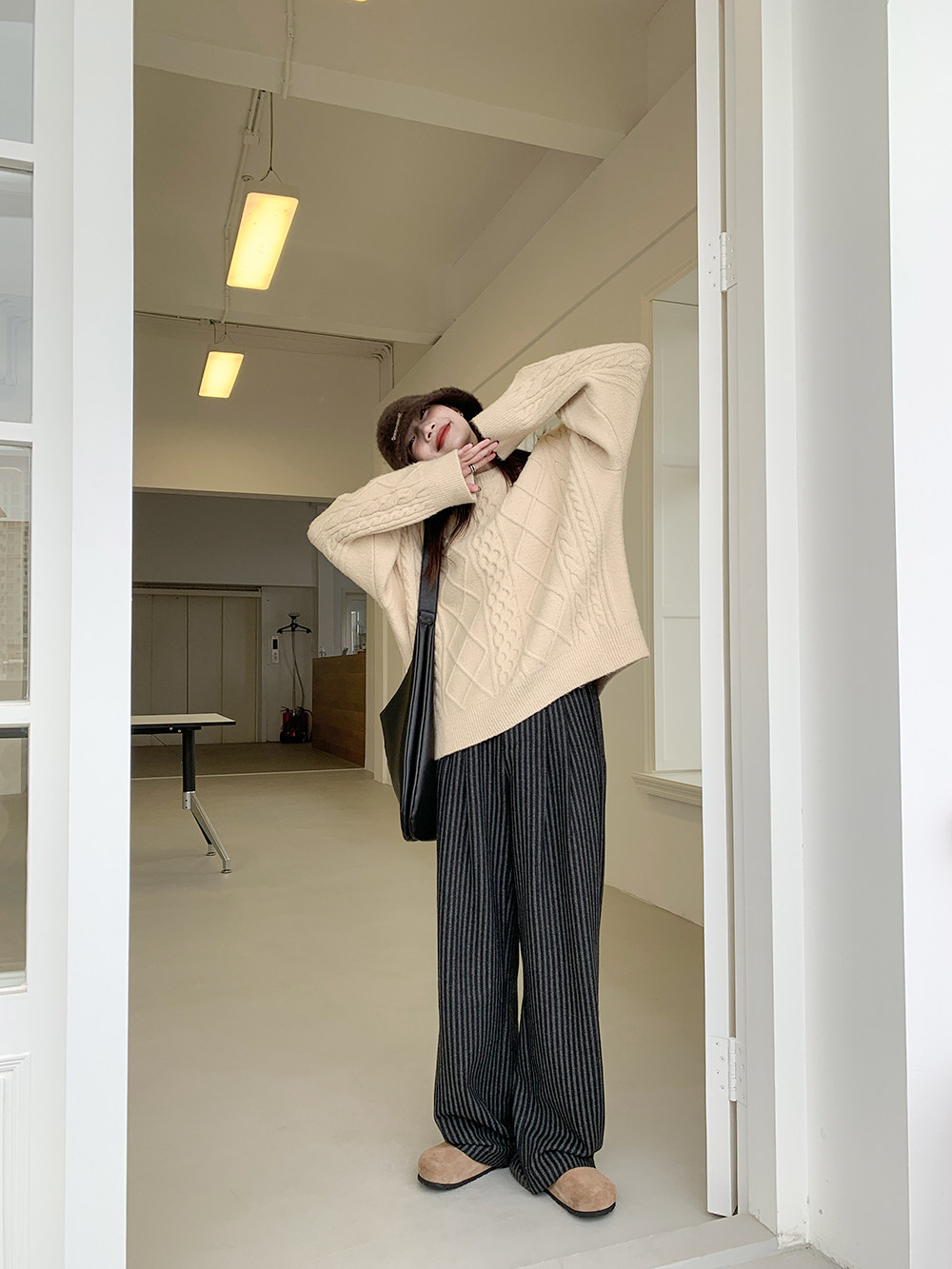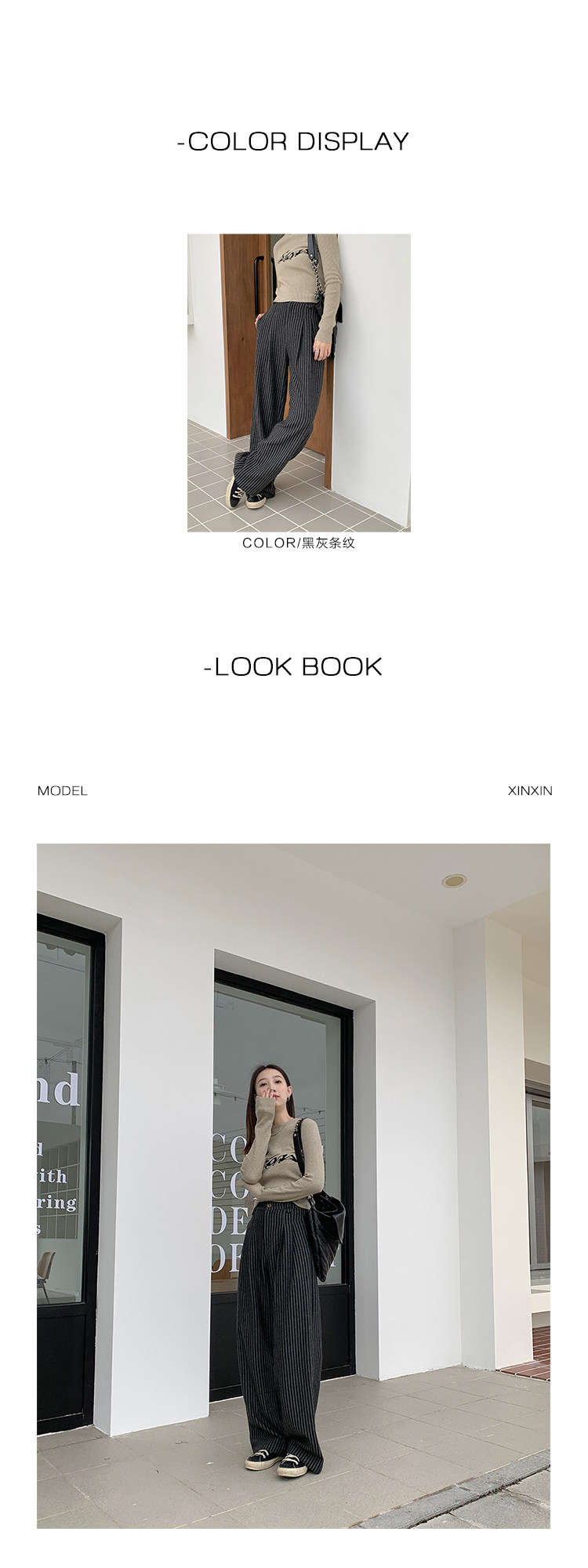 Демисезонные приталенные черные штаны, свободный прямой крой, высокая талия