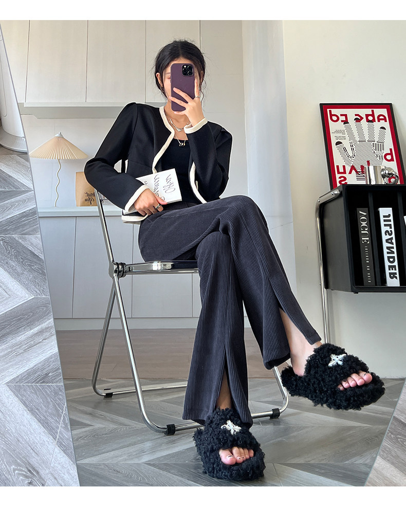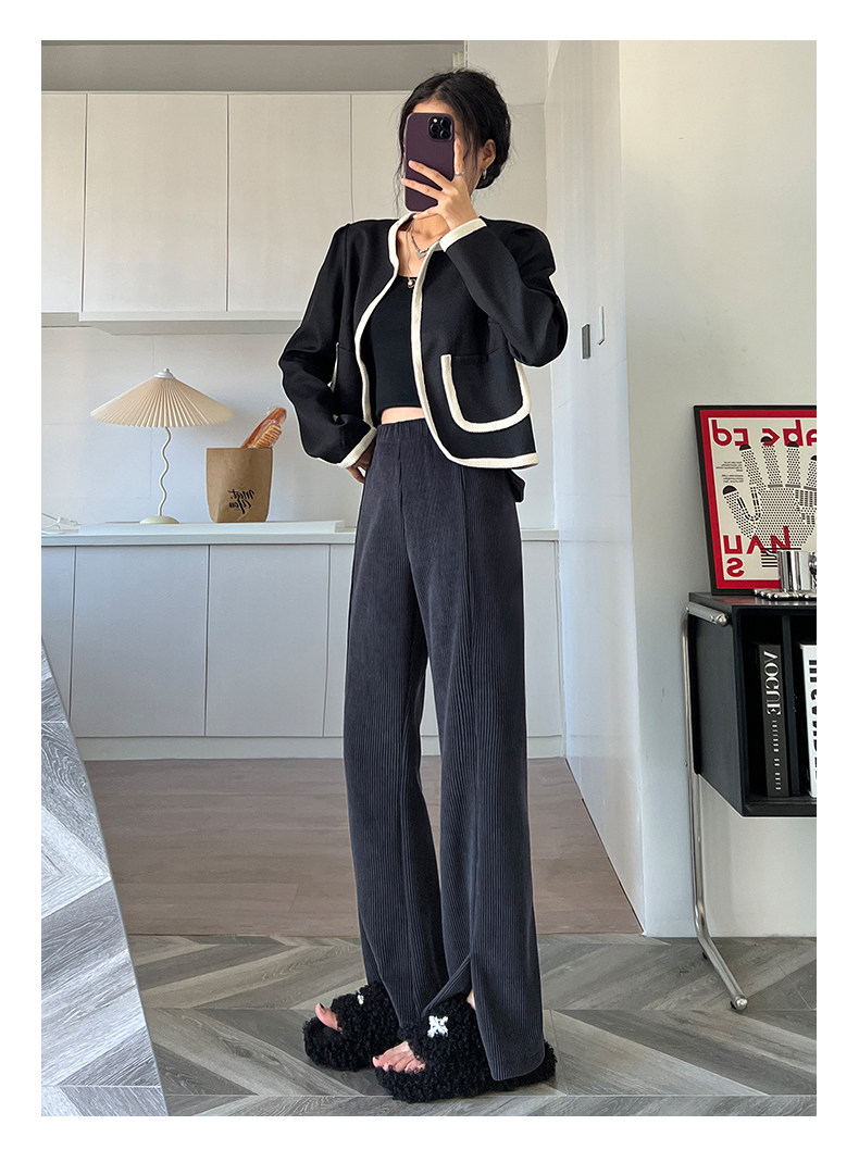 Черные вельветовые осенние штаны, штаны-клёш, коллекция 2023
