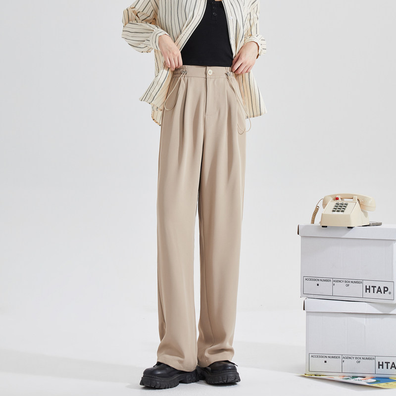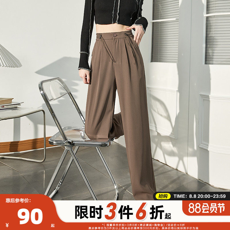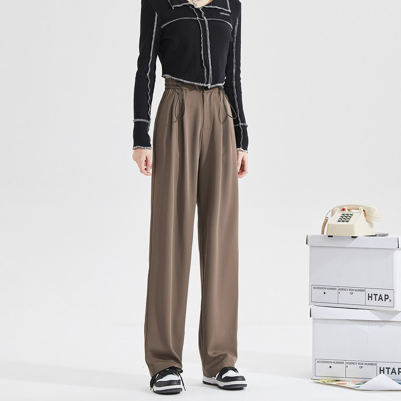 Штаны, осенний коричневый пиджак классического кроя, 2023, свободный прямой крой, высокая талия