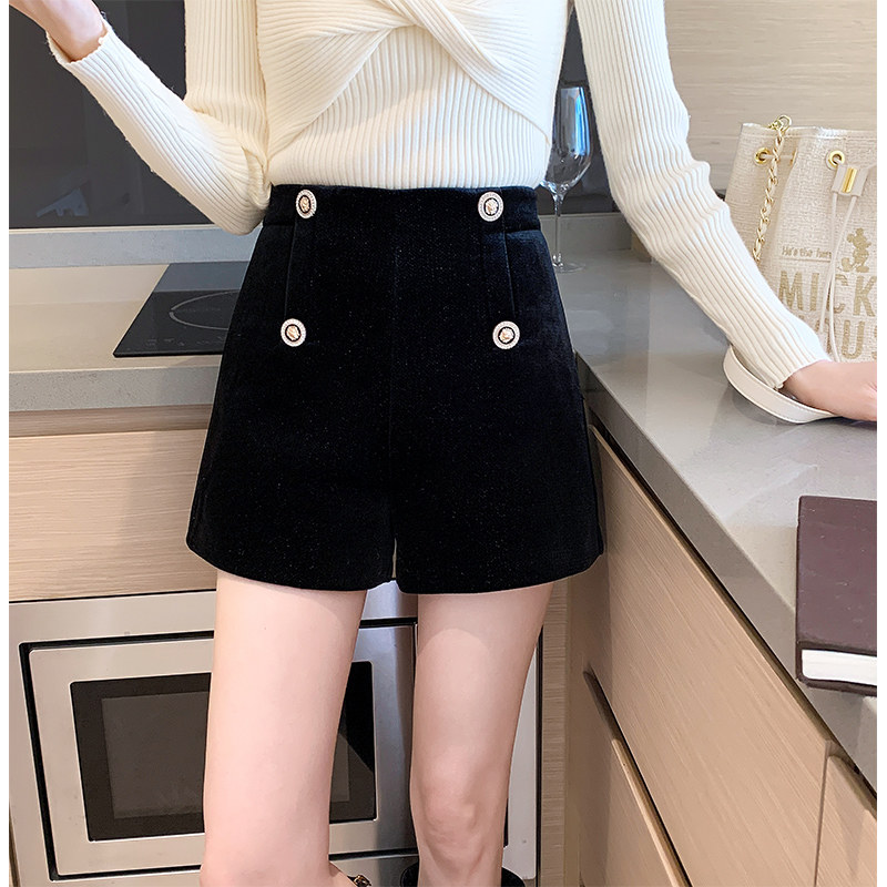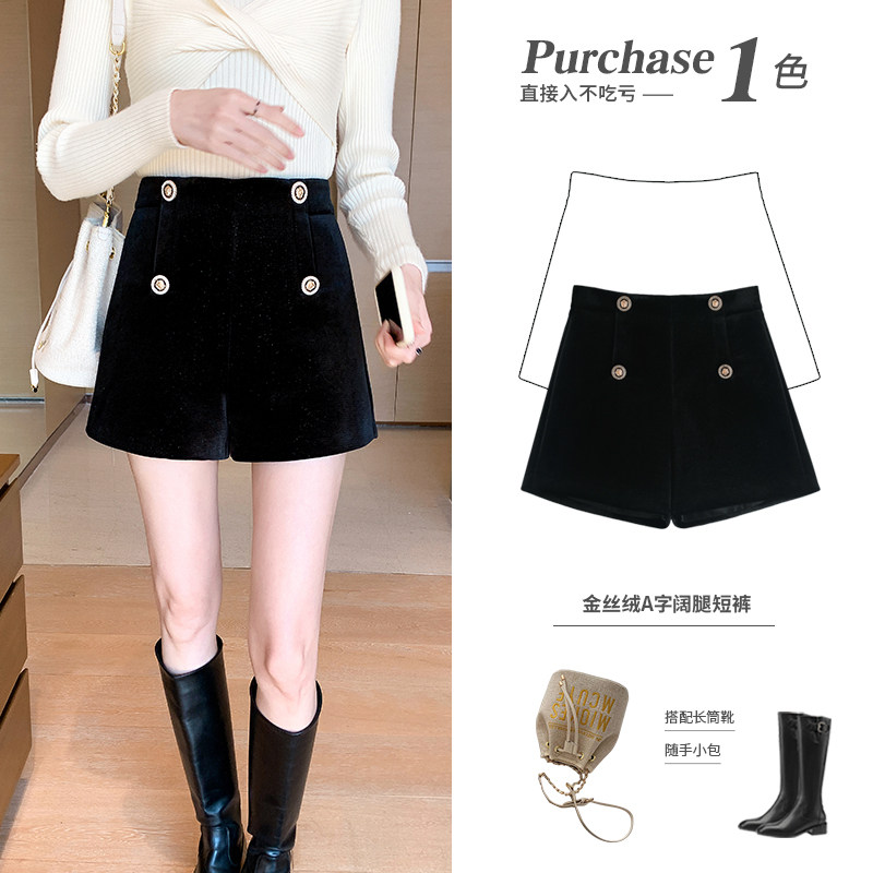 Бархатные шорты, зимние штаны, высокая талия, коллекция 2022, свободный прямой крой, в западном стиле