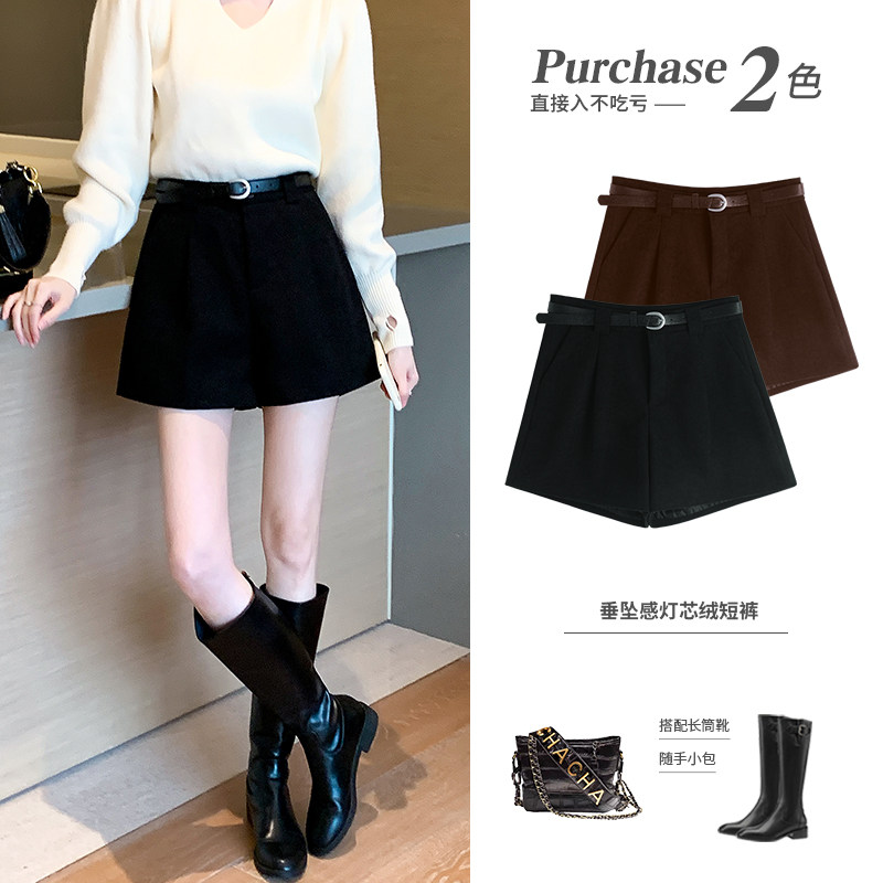 Вельветовые шорты, зимние штаны, высокая талия, свободный прямой крой