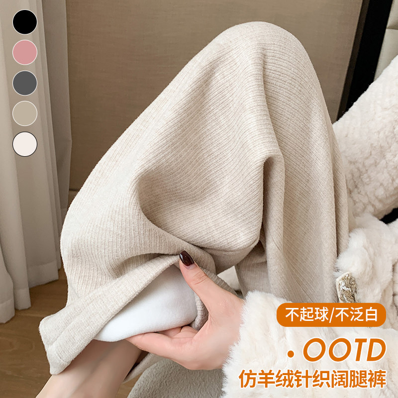 Кашемировые демисезонные штаны, флисовые трикотажные леггинсы для отдыха, коллекция 2023, высокая талия, свободный прямой крой