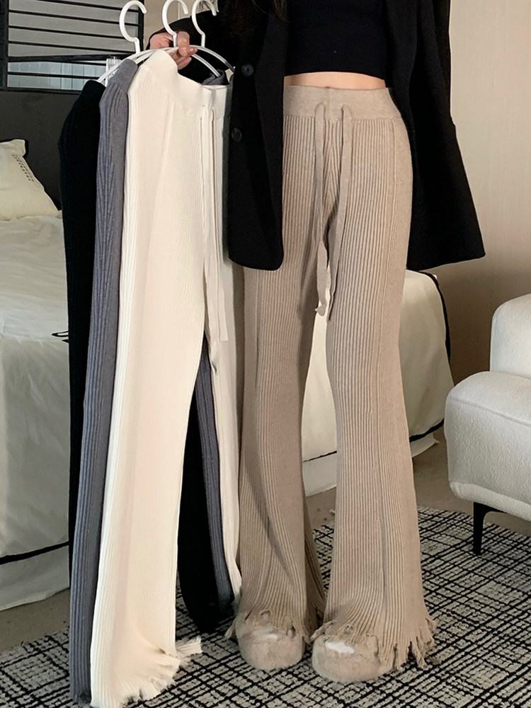 Демисезонные штаны, трикотажные штаны-клёш, высокая талия, увеличенная толщина, подходят для подростков