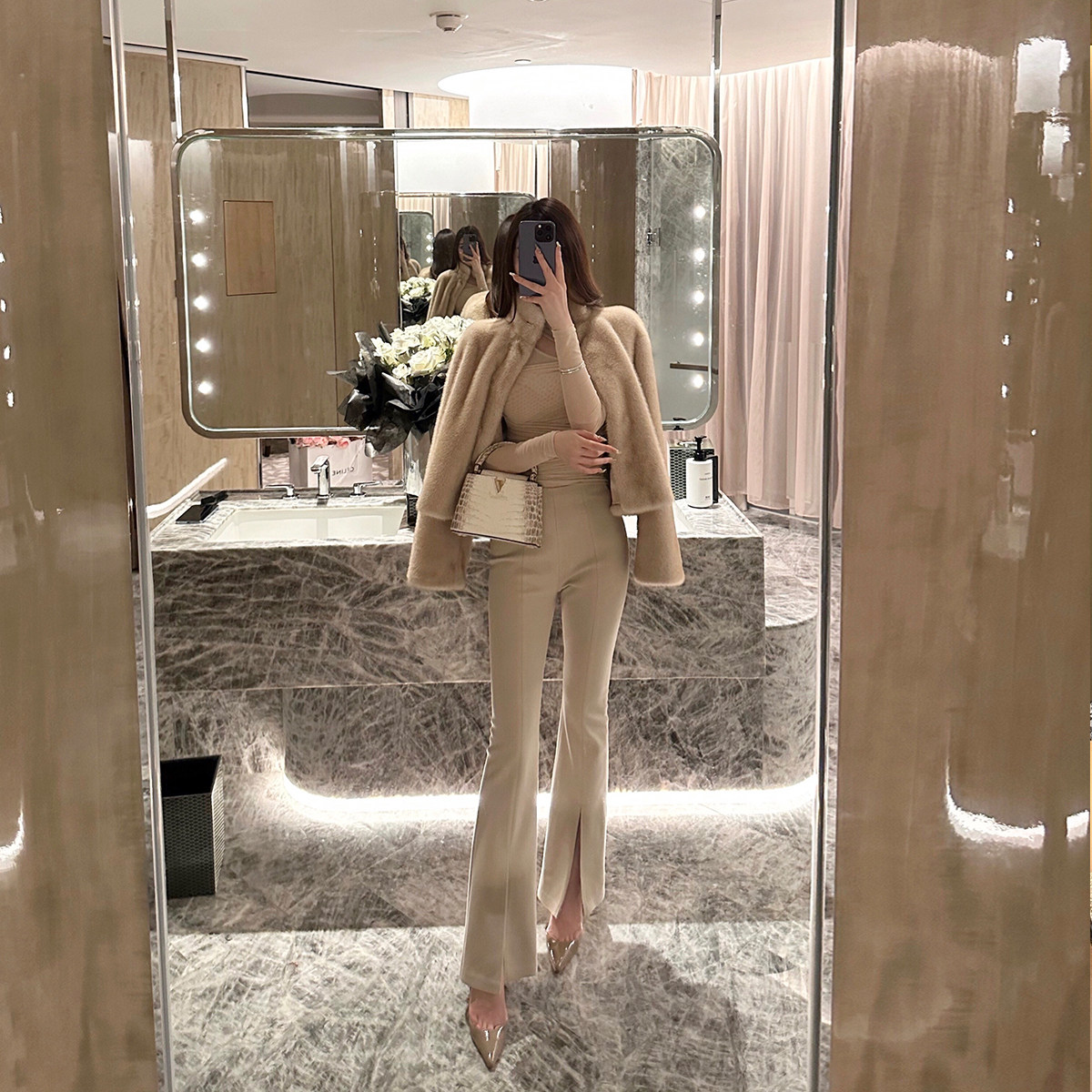 Флисовые удерживающие тепло штаны-клёш, приталенные штаны, комбинезон, высокая талия