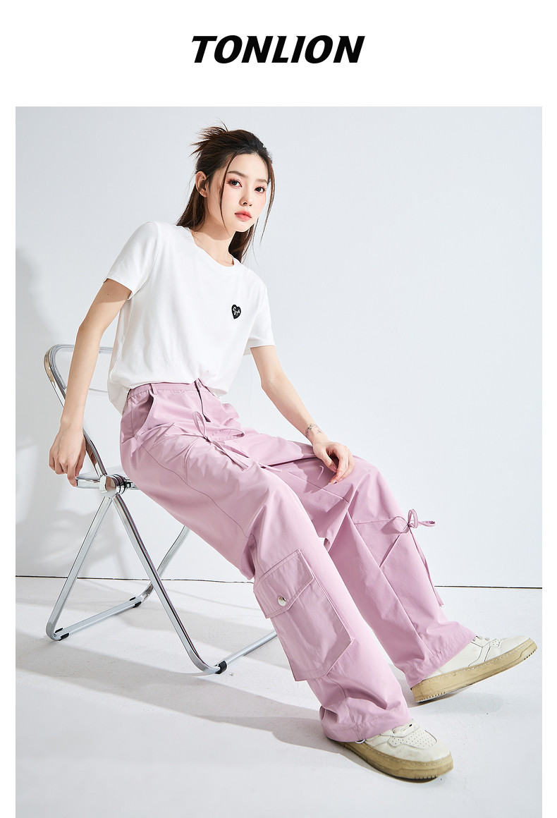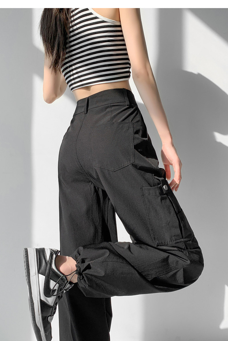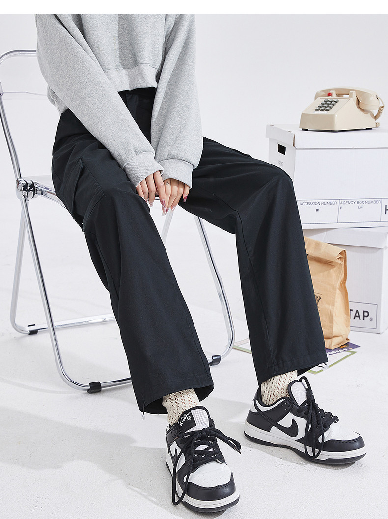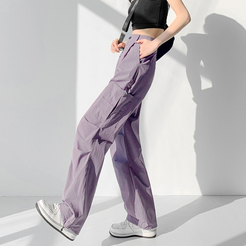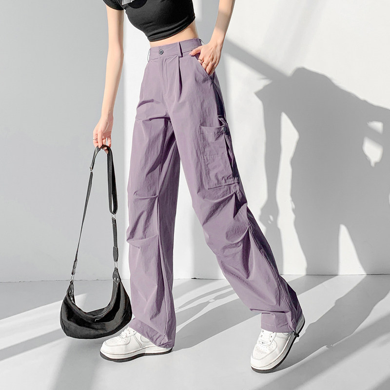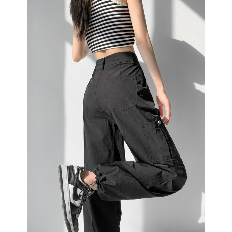 Летние дорожные дизайнерские штаны, в американском стиле, свободный прямой крой, тренд сезона